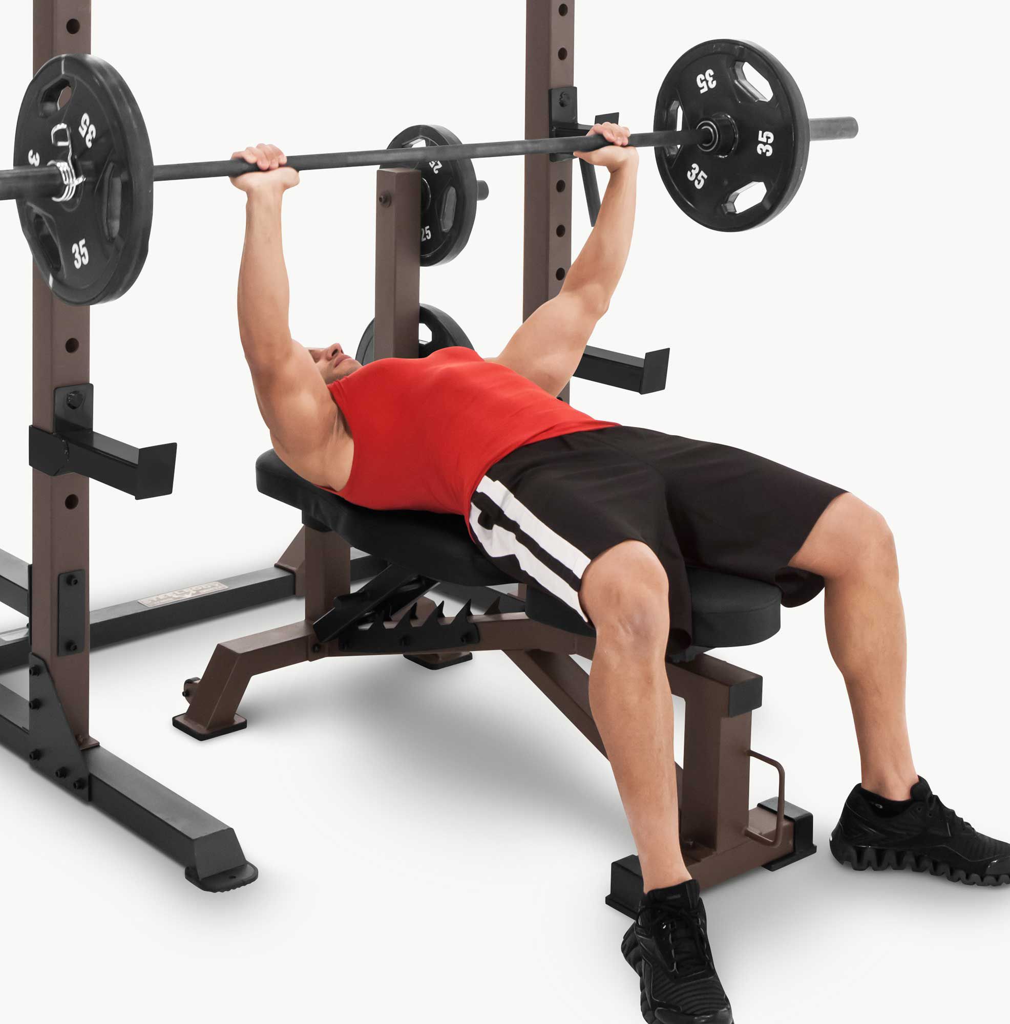 Target specific muscle groups for a full body workout with the SteelBody® Deluxe Utility Bench. Ideal for beginners and serious home trainers alike, it features steel construction and heavy-duty legs for maximum stability and support. This bench offers convenience and versatility with transport wheels and the ability to be added to any rack or cage system. Customize your workout with the six-position back rest bad and five-position seat pad.