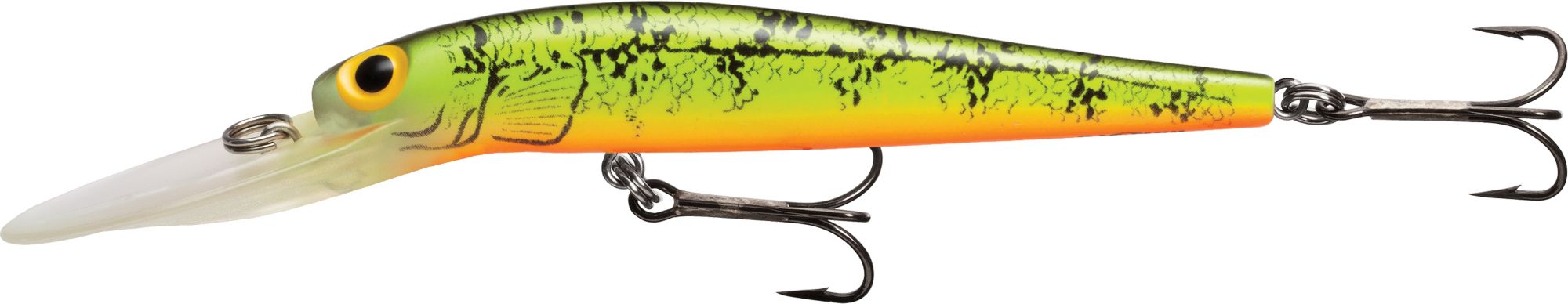 The Original ThunderStick Deep Hard Bait is designed to reach walleye in deeper areas. This bait features a tight action that runs true at high speeds and a loud multi-ball rattle. In addition, the external scales, 3D holographic eyes, flashy colors and UV Bright finish maximize attraction. The Storm® Original ThunderStick Deep Hard Bait is equipped with premium VMC® black nickel hooks.