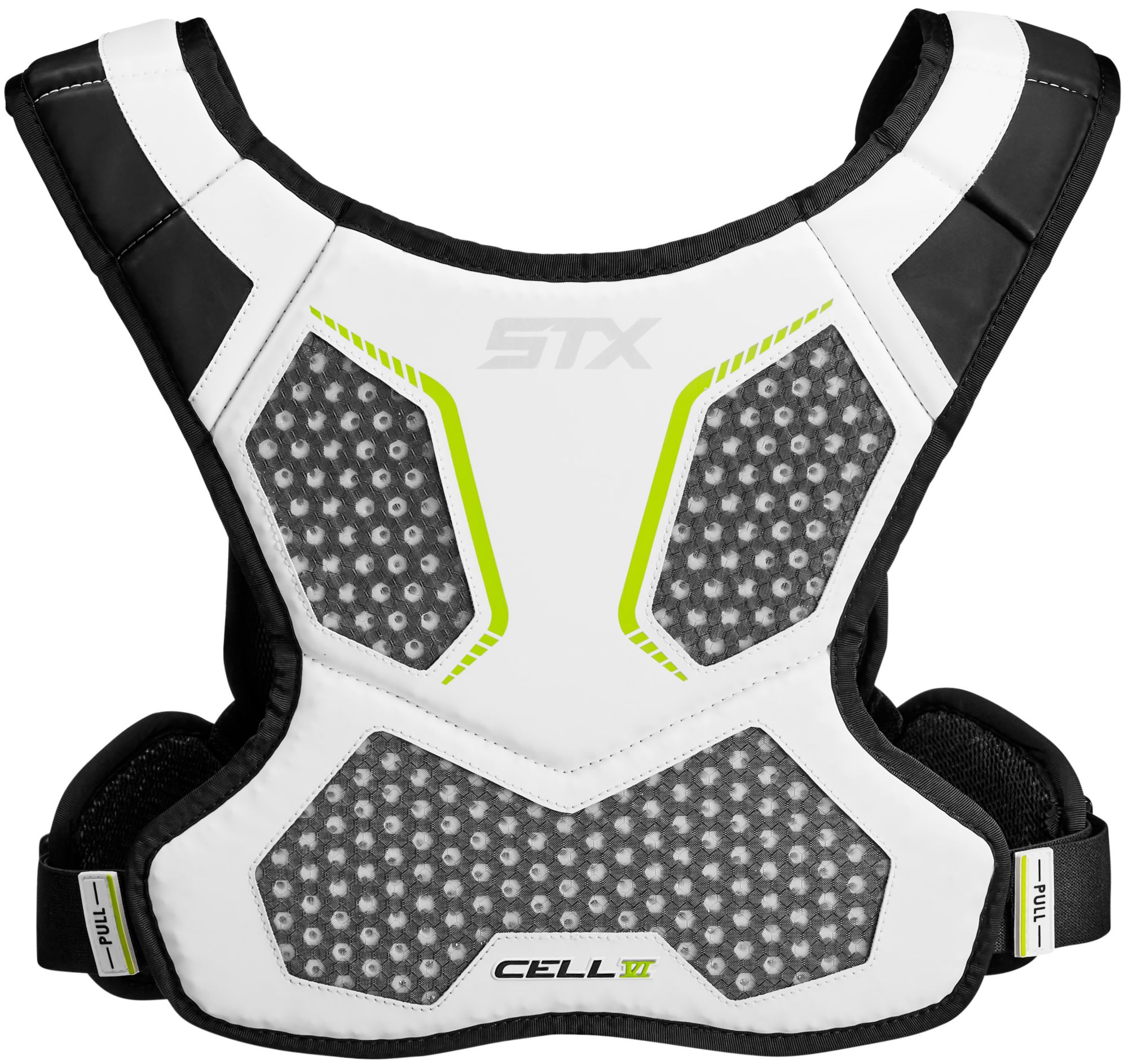 New chest protection system (Patent Pending) for low profile and lightweight protection that meets current NOCSAE Standard