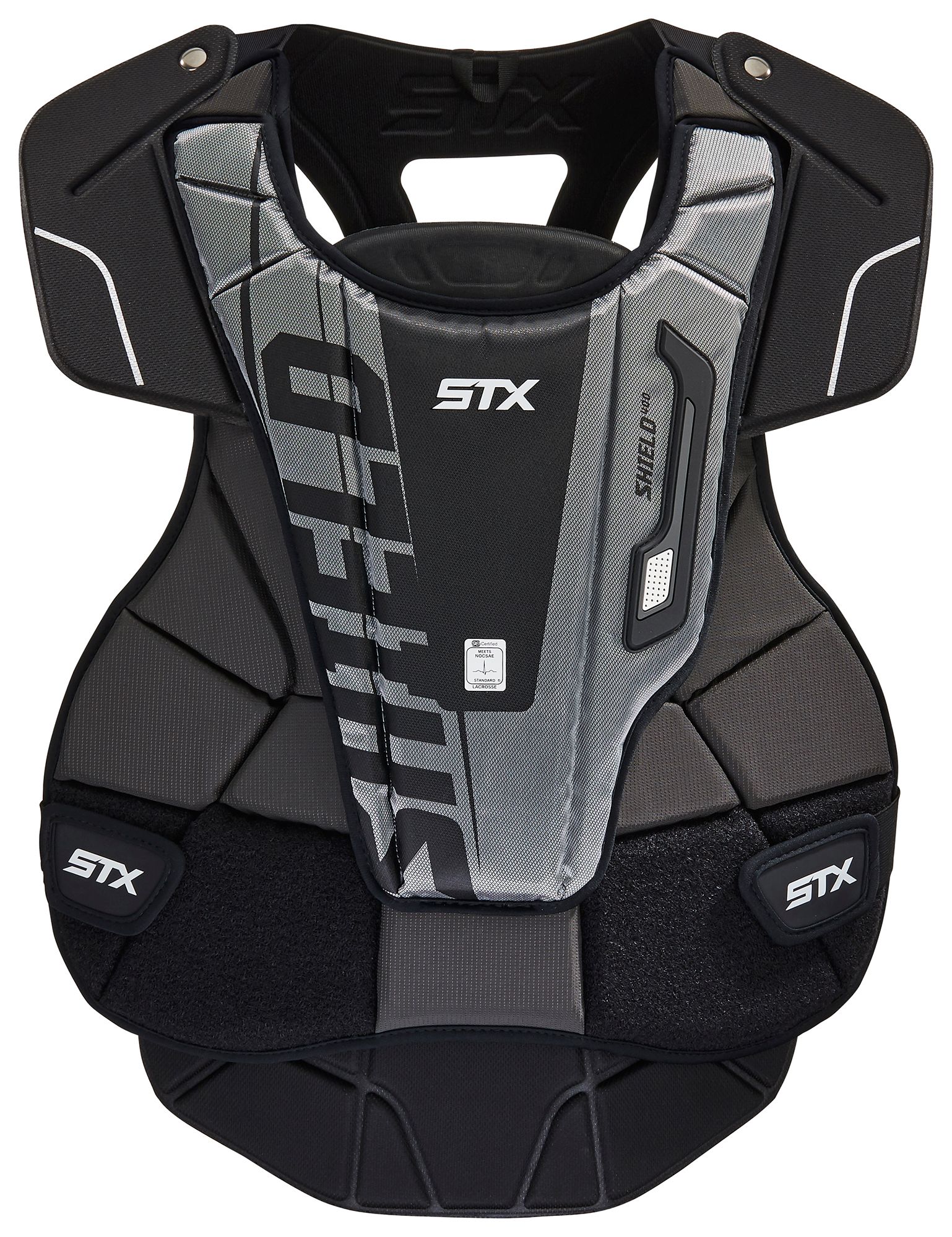 Designed for superior protection and unbeatable mobility, the STX® Shield 400 Lacrosse Goalie Chest Protector helps you stay focused to protect your goal. Choose between extra protection or maximum mobility with removeable stomach pad and shoulder caps. Enjoy a custom fit with a strap system that allows for a wide range of adjustability.