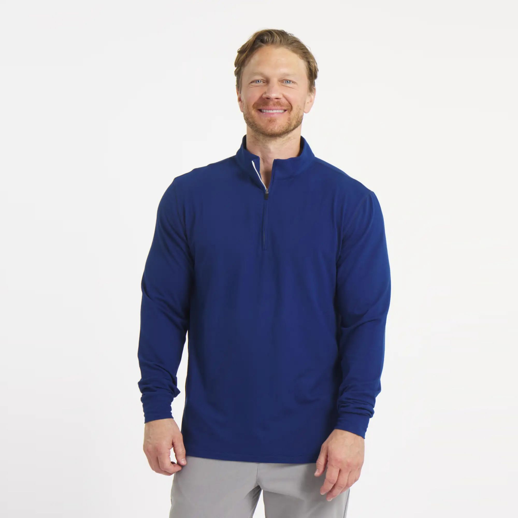 The Everyday 1/4 Zip is made from lightweight, moisture-wicking fabric to keep you dry and comfortable all day long. Its 4-way stretch design allows effortless movement, while the ultra-soft, double-peached finish delivers a premium feel against your skin. Blending everyday versatility with high-performance comfort, it's built to move with you—on or off the course.