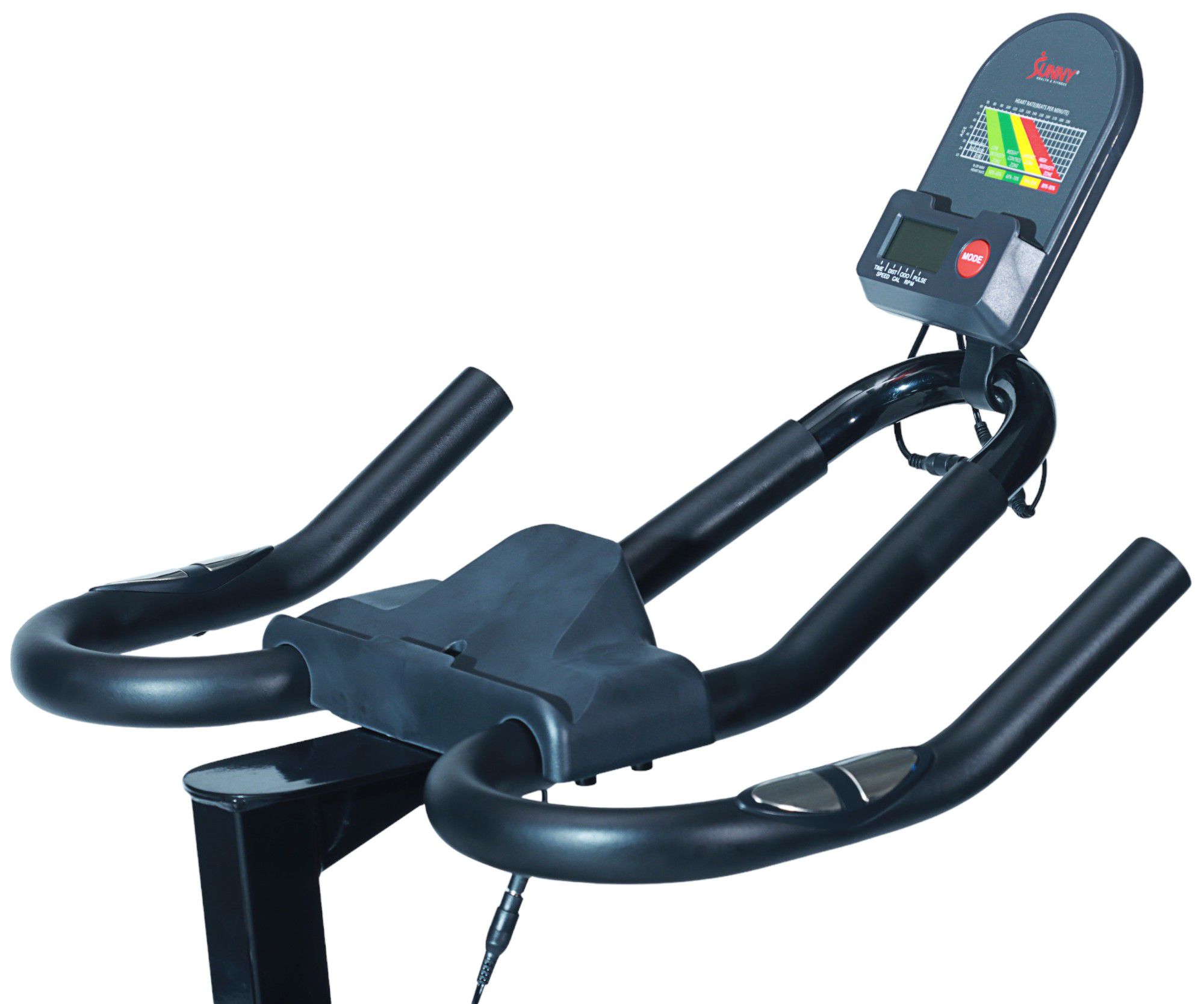 Experience an unparalleled cycling workout with this advanced indoor cycling bike from Sunny Health & Fitness. The bike boasts a robust 40 LB chrome flywheel, ensuring exceptional stability and riding momentum for challenging and effective workouts that engage your muscles. Stay connected and motivated by syncing the bike via Bluetooth to access a plethora of training resources, including over 1000 training videos, 10,000 global tours, and various fitness programs. Enjoy a peaceful workout environment thanks to the belt-drive mechanism's quiet operation, allowing you to exercise without disturbing others. Achieve your desired workout intensity effortlessly using the stepless resistance and micro adjustable resistance knob. The dual felt pad resistance system ensures seamless adjustments, and for quick stops, simply push down the resistance knob. Customize your cycling experience further with adjustable multi-grip handlebars and a two-way seat, accommodating your riding style and leg inseam length. The bike's heavy-duty steel frame provides stability, allowing you to confidently engage in any cycle-based workout, and it supports up to 275 lb. Track your progress with the performance digital monitor displaying essential metrics like time, speed, distance, calories burned, pulse rate, and RPM. For added convenience, the bike features a device holder, bottle holder, and a dumbbell holder, all within easy reach. The setup is effortless, allowing you to start your workouts quickly, and the bike's mobility is enhanced by built-in transportation wheels, enabling easy movement and storage. Trust in Sunny Health & Fitness, a top fitness brand for over 20 years, offering superior products and excellent customer service, along with a 1-year warranty on the structural frame for your peace of mind