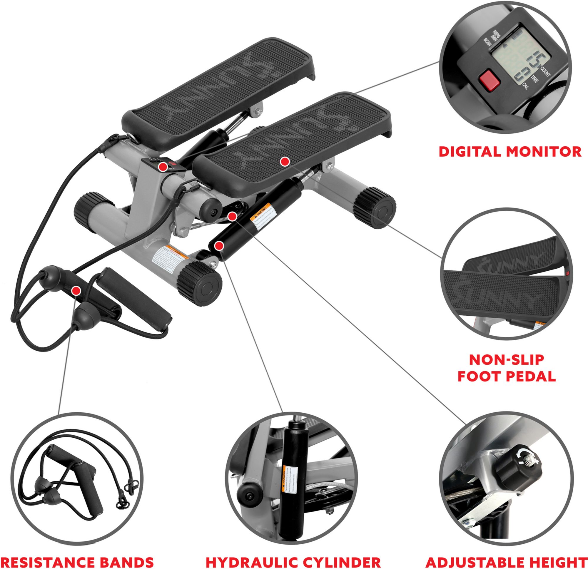 Get fit and healthy in the comfort of your own home with the Sunny Health & Fitness® Mini Stepper with resistance bands. Offering a full cardio workout and strengthening your muscles, this stepper exercise machine can help you get a shapely and toned body as well as full body workout. Work out anywhere at any time.