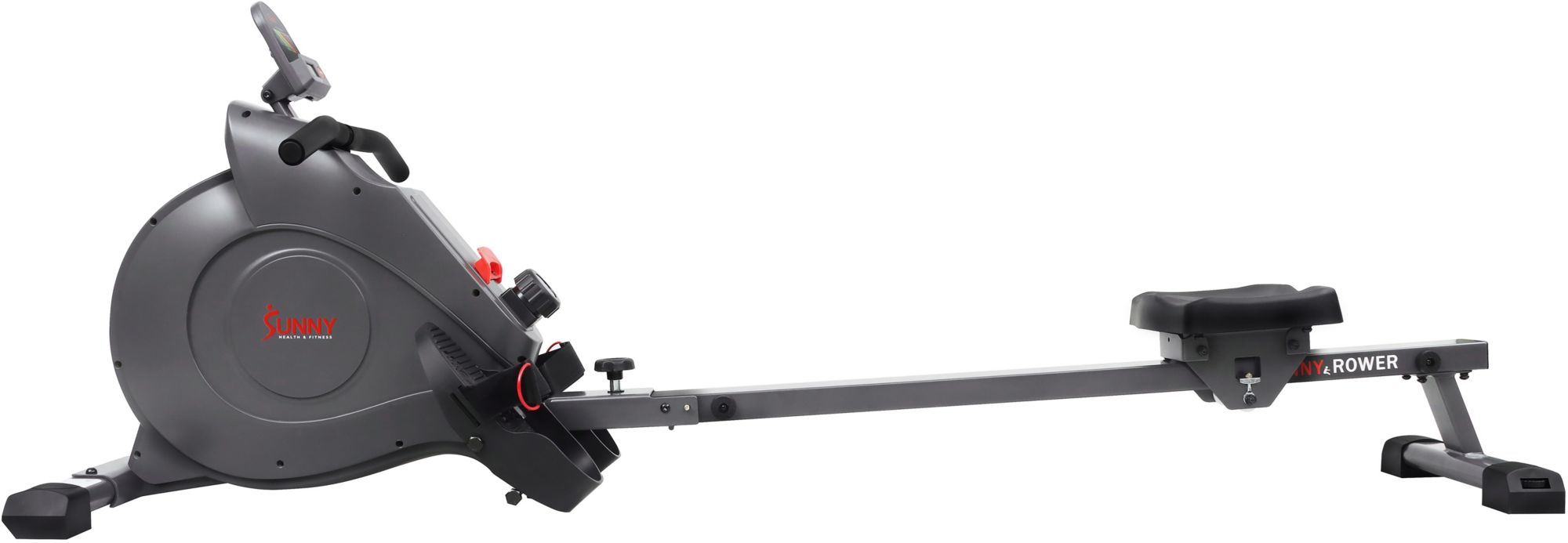 Row into shape with the top-of-the-line Sunny Health & Fitness Magnetic Rowing Machine! Connect your rower via Bluetooth and start rowing with our certified trainers through our SunnyFit® App! This rowing machine offers all of the necessities for an intense yet enjoyable rowing workout in the comfort of your own home. Designed with a newly improved, smoother, quieter magnetic tension system, this rower comes with 8-levels of adjustable tension. Other features include a convenient and large LCD console, a fully padded seat, larger anti-slip foot pedals, 2 device holders, and built-in transportation wheels. The Sunny Health & Fitness Magnetic Rowing Machine with LCD Monitor is designed for convenience while also providing the challenging feeling of an outdoor rowing experience. The quality of its heavy-duty steel frame is built for durability and to support users of all skill levels and body types. This indoor rowing machine is built based on our popular SF-RW5515, a product that hundreds of thousands of satisfied customers can vouch for.