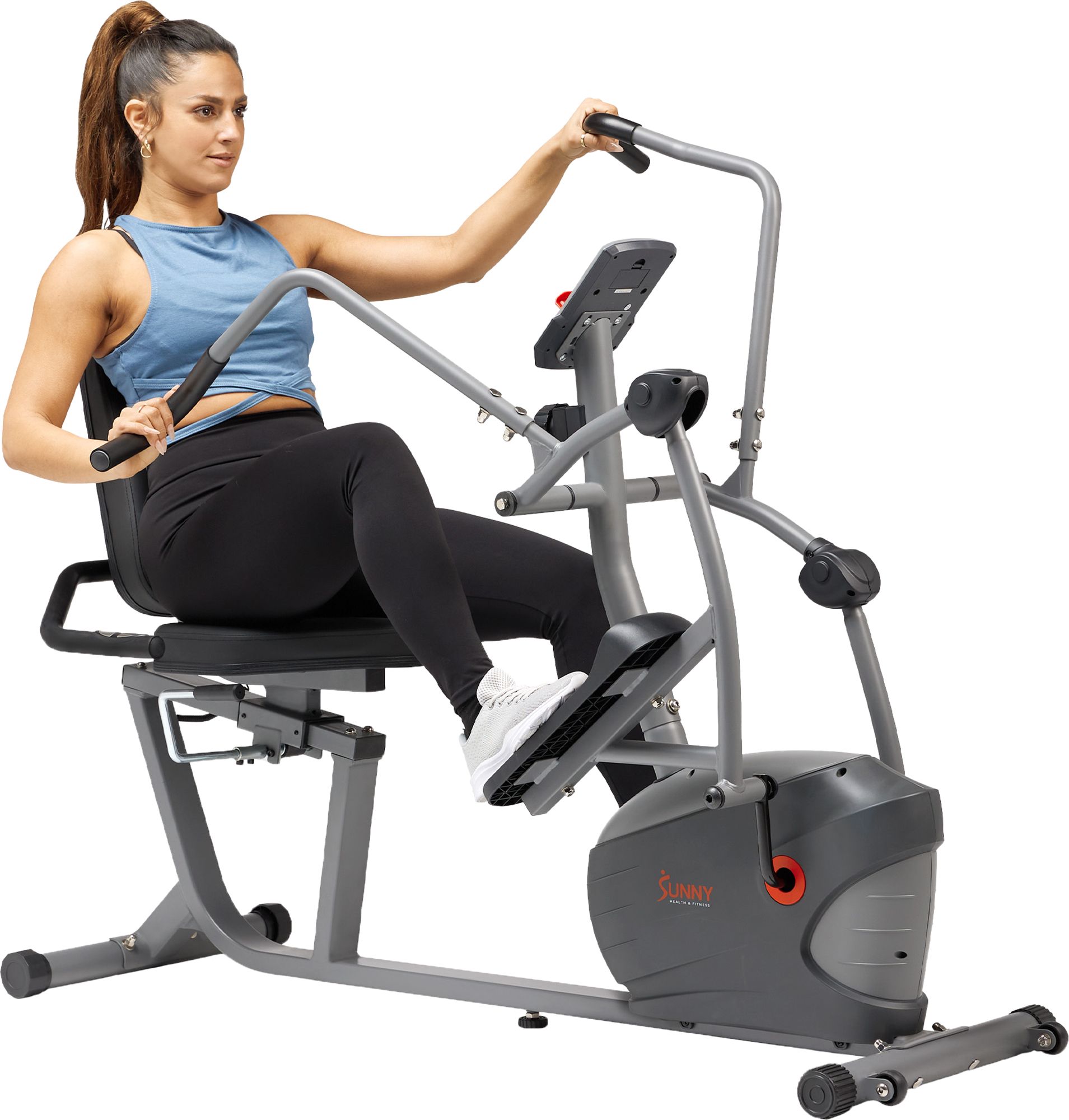 Enjoy a low-impact and efficient workout with the Performance Interactive Series Recumbent Elliptical. Use the 8 levels of smooth magnetic resistance to deliver a full-body workout while still being gentle on your joints. Feel comfortable throughout the duration of your workout with the large, cushioned, easily adjustable seat. For an enhanced workout experience, connect your recumbent elliptical to the SunnyFit® app to follow along with professional trainer-led fitness courses and exercise with other members of the SunnyFit® community.