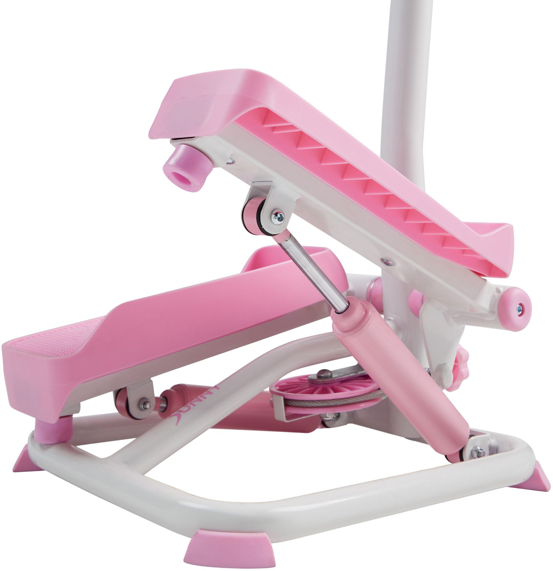 Elevate your fitness with the Sunny Health & Fitness Smart Stepper P2410, now available in stylish pink and a max weight capacity of 330 pounds! Designed for a complete body workout, this stepper includes an enhanced handlebar for added stability and balance, offering essential support as you engage your biceps, triceps, shoulders, and core using resistance bands. Its compact design makes it perfect for small spaces, and the built-in device holder with a sturdy clip ensures your phone or tablet stays secure during workouts. Sync stepper with the free SunnyFit App via Bluetooth to access over 1,000 virtual workouts and 10,000 global routes, keeping you motivated and on track to reach your goals. With over 20 years of commitment to excellence, Sunny Health & Fitness delivers superior products and dedicated customer service. Transform your fitness routine today with this versatile and user-friendly exercise stepper.