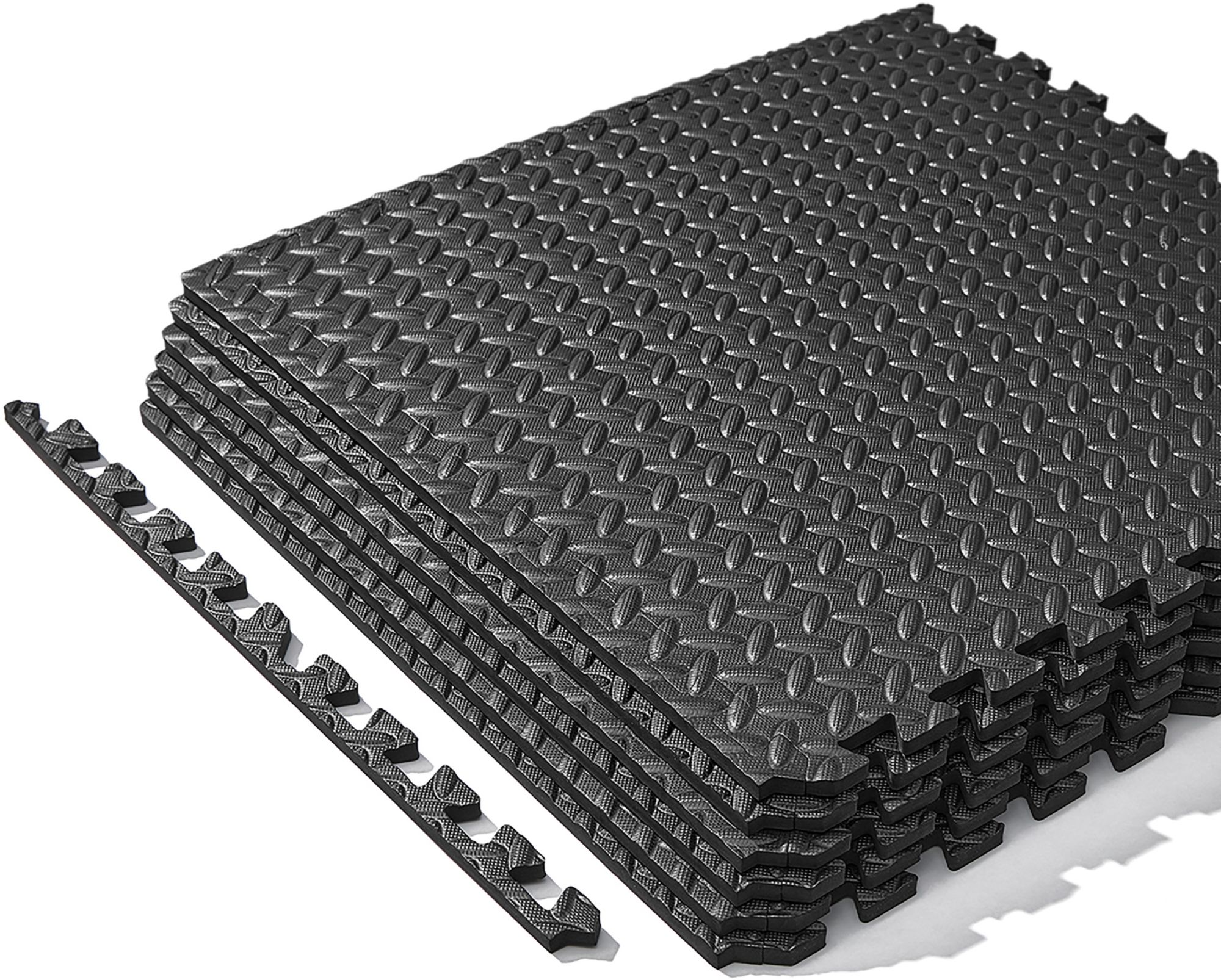 FULL COVERAGE: Each tile measures 24.4" x 24.4" x ½" thick (at the highest point of the texture). The set includes 6 tiles per carton with end borders for a seamless finish
