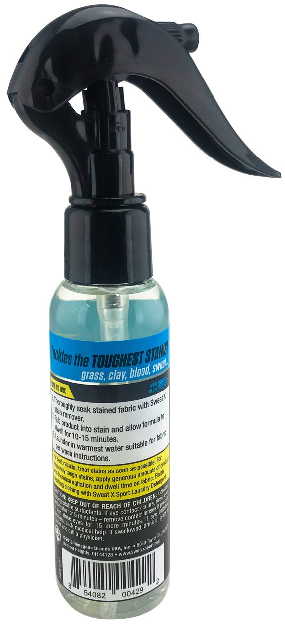 The Sweat X® Stain Remover Spray 2oz helps lift stains from the inside out. No matter what the sport the stain spray removes grass, clay, mud, blood, ect. The NONVASIVE technology exfoliates harmful bacteria that cause odor from fabrics and gear