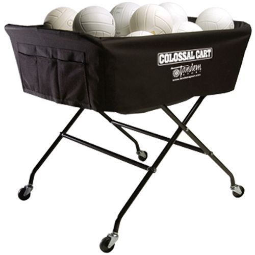 Run your practices fluently with the Tandem ® Colossal Ball Cart. This oversized cart holds up to 40 balls and also features a nylon basket for additional storage. The nylon basket includes side pockets so you can easily store your essentials like notebooks, cell phones and water bottles.