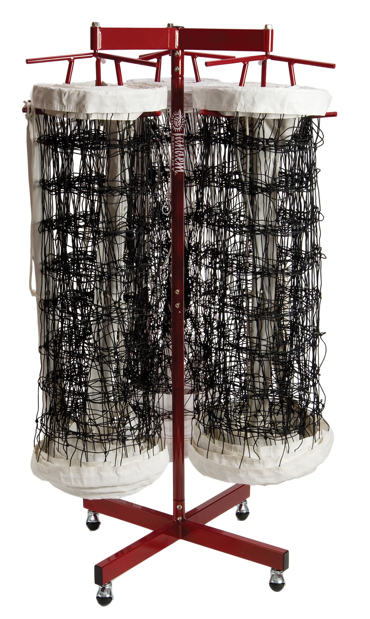 Get the game or practice started much quicker and easier with the Tandem® Triple Net Storage Rack. This rotating device allows for smooth collection, eliminating the usual stress associated with net storage.