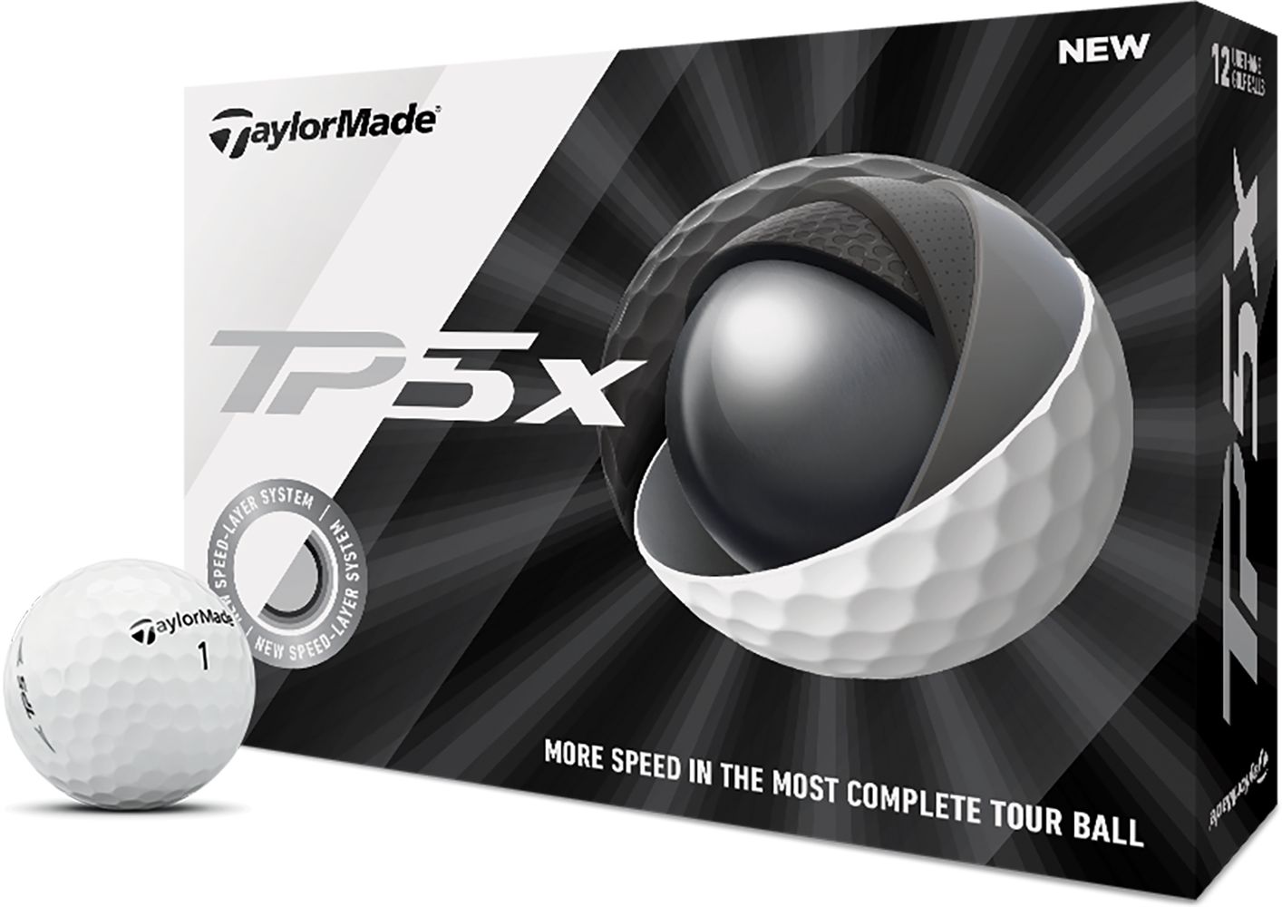 Trust in TaylorMade’s most complete Tour ball while playing TaylorMade TP5x Golf Balls. The extra-large, 3-layer Tri-Fast Core features a lower compression rating to increase launch angle and reduce drag. A new HFX Speed Layer System utilizes 4 increasingly stiff layers to create higher ball speed through greater rebound. The Soft-Tough Dual-Spin Cover employs a softer cast urethane material to increase groove interaction for more greenside spin.