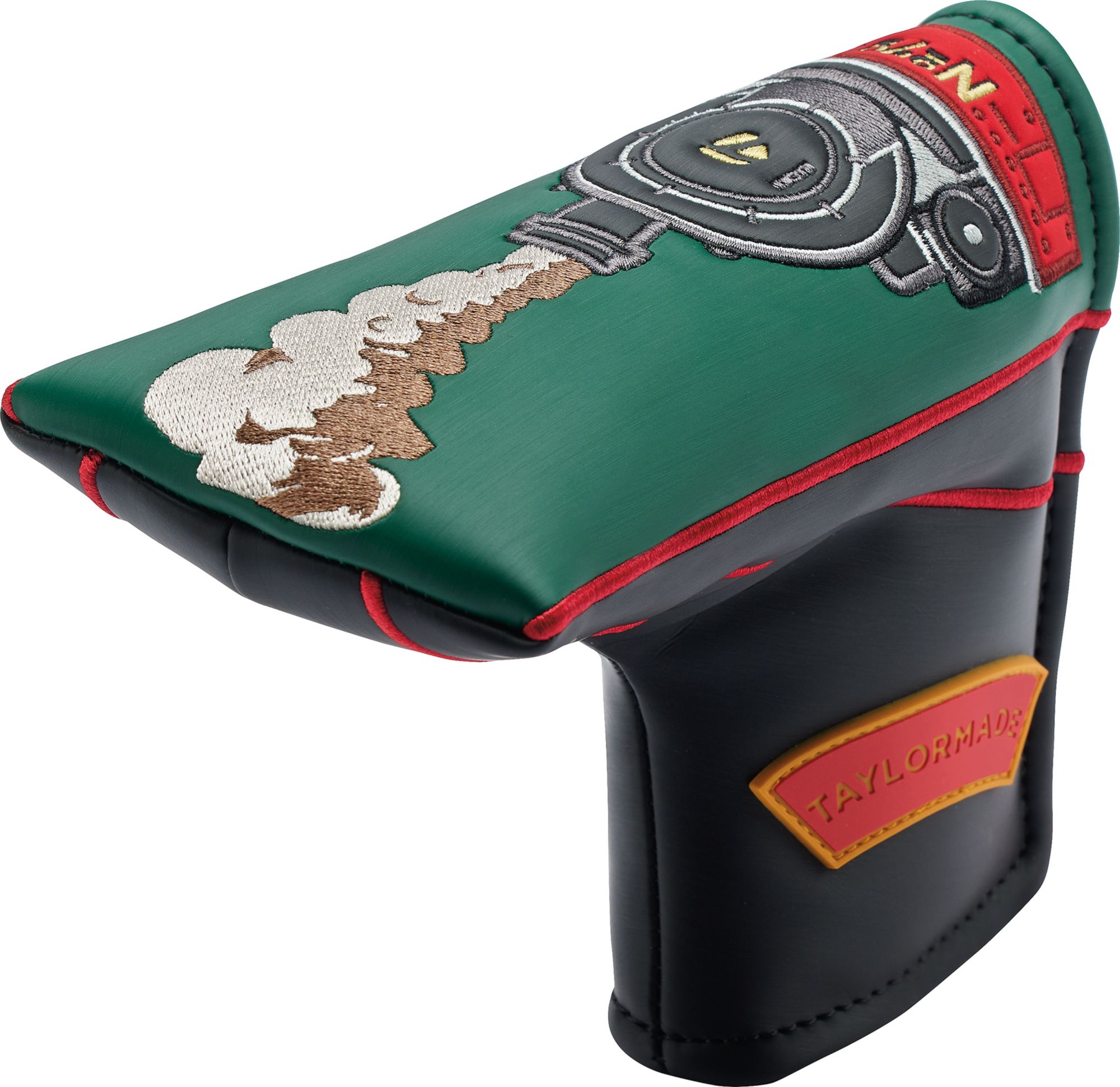 The Steam Line headcovers carry on many of the same design themes found in the staff bag. Here again, black, red and green colorways with gold trim announce themselves, as do tributes to the iconic train.