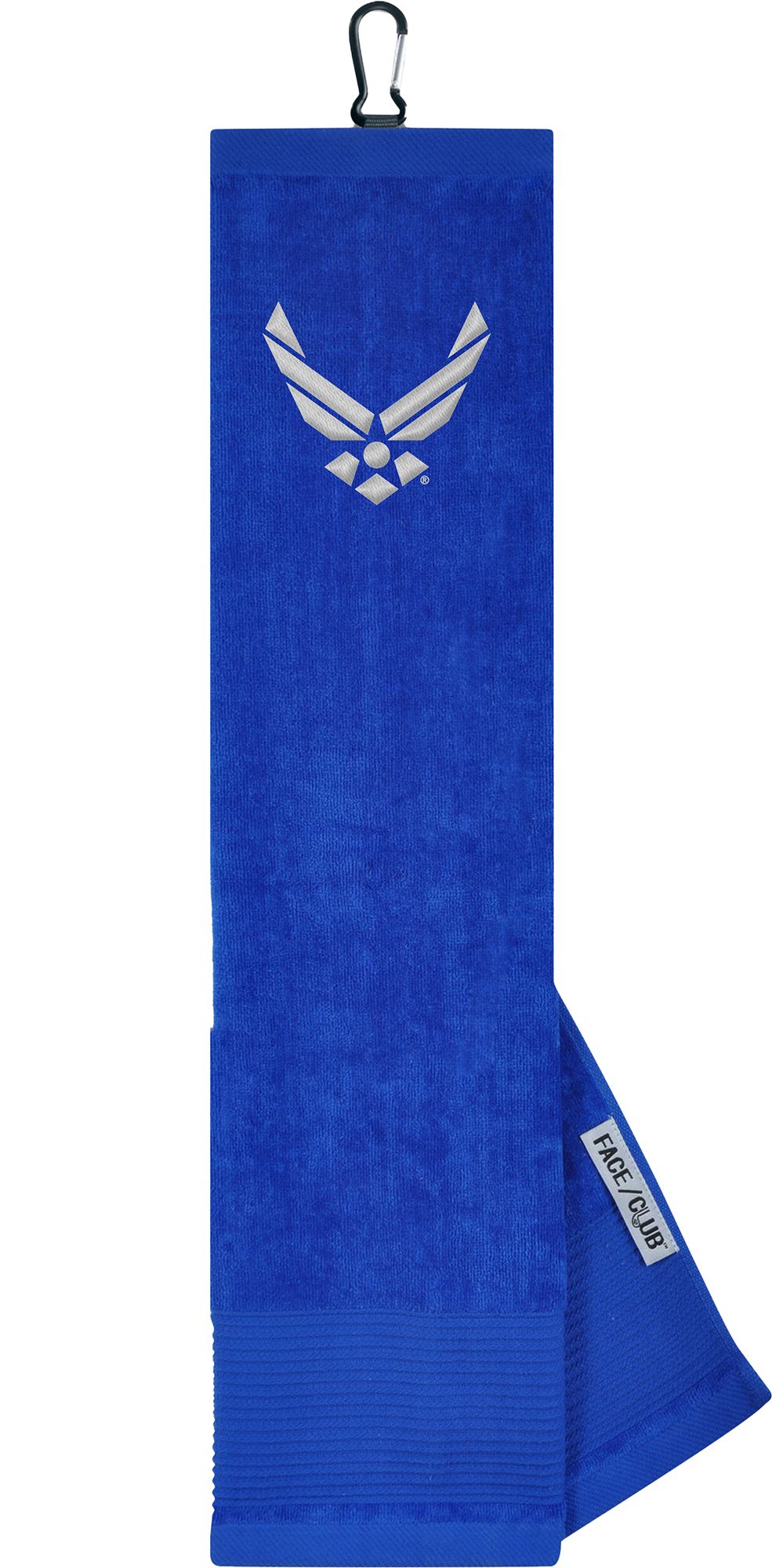 Ingenuity meets versatility to form the Team Effort Embroidered Face/Club Tri-Fold Towel. This dual-textured towel features woven ribs designed to remove dirt from your clubs and a highly absorbent, sheared velour panel to wick away moisture. A carabineer clip located on top secures the towel to your bag or cart for maximum convenience. Boldly embroidered, full-color trademarks show everyone on the course your fandom.