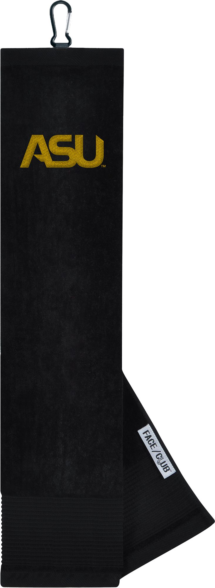 Ingenuity meets versatility to form the Team Effort Embroidered Face/Club Tri-Fold Towel. This dual-textured towel features woven ribs designed to remove dirt from your clubs and a highly absorbent, sheared velour panel to wick away moisture. A carabineer clip located on top secures the towel to your bag or cart for maximum convenience. A boldly embroidered, full-color team trademark shows everyone on the course your support for your favorite team .