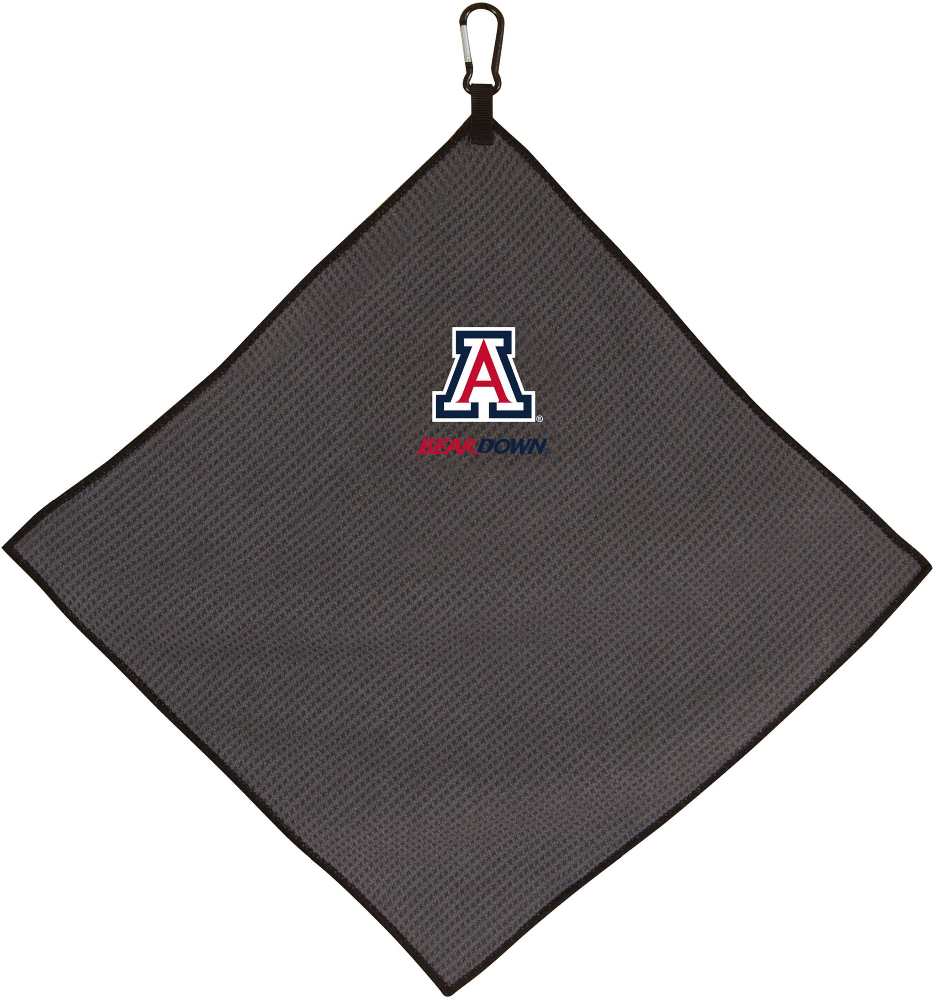 Add a flash of team sprit to your golf accessories with the Arizona Wildcats Microfiber Golf Towel. Constructed of soft material, this towel features a waffle weave design to ensure efficient debris removal without damage to the club finish. A durable carabiner clip securely attaches to your golf bag to keep your towel accessible and pride visible. An embroidered, full-color school logo completes the Team Effort Microfiber Golf Towel.