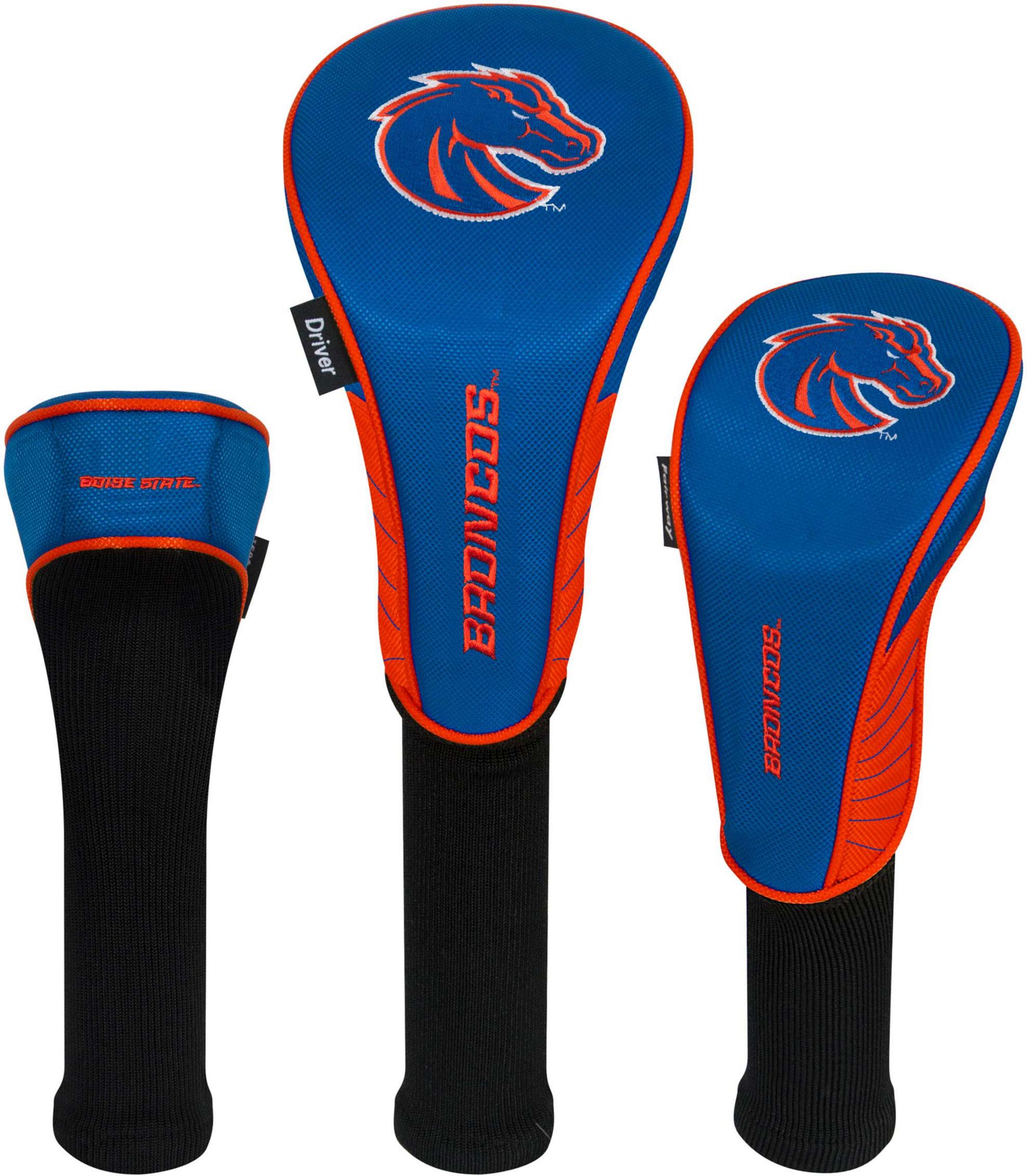 Boldly display your support for the Broncos by protecting your metalwoods with Team Effort Boise State Broncos Headcovers. Specifically designed to fit most driver, fairway wood and hybrid models, each premium headcover is constructed of rugged 420D nylon material and features a long neck design to deliver maximum club protection. Vibrant, contrasting team color elements combine with multiple team trademark embroideries to show your course mates who back on game day.