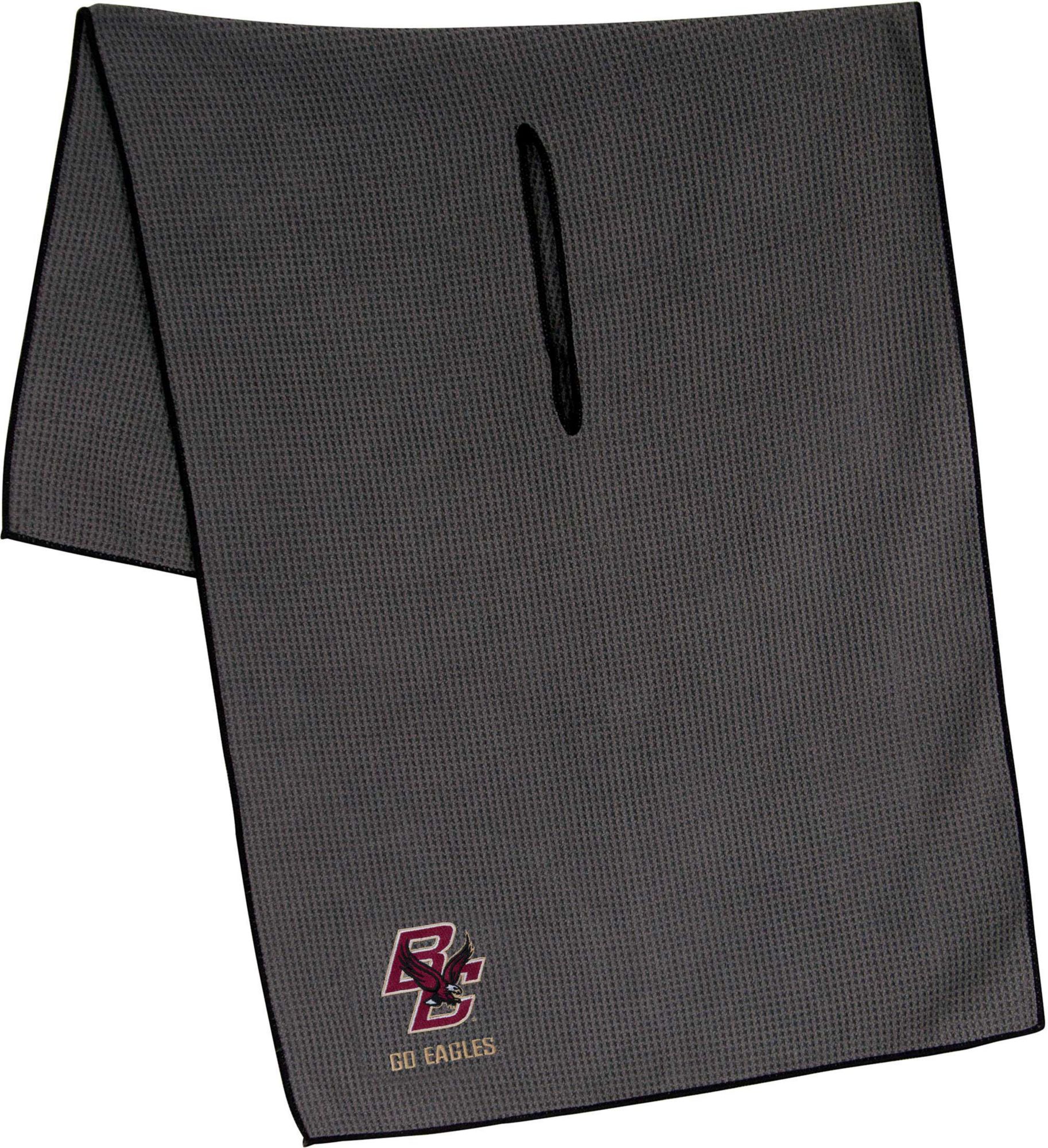 Maintain your clubs as easily as the Eagles maintain a lead while using the Team Effort Boston College Eagles Microfiber Golf Towel. The microfiber waffle-weave construction enables fast and easy club cleaning without damaging the finish. An oversized construction allows you to keep part of the towel wet and part dry for easier cleaning, while a large center slit slides over your clubs for added protection. A boldly embroidered team trademark puts your Eagles pride on full display.