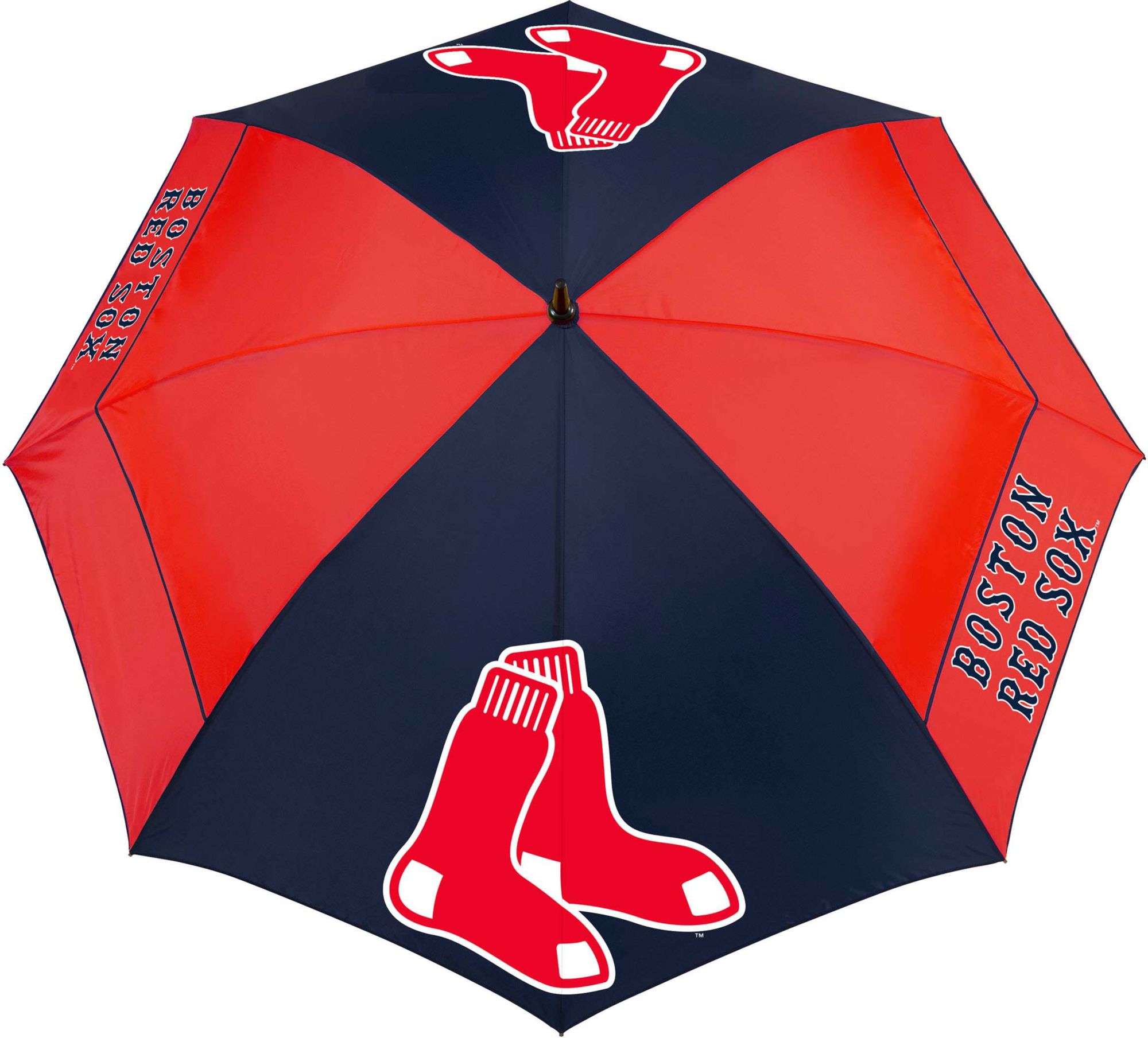 Block out the elements, much like the Red Sox block out their opponent, while using the Team Effort Boston Red Sox Windsheer Lite Golf Umbrella. Constructed of durable 190T nylon material, the canopy features two single panels and six double panels to minimize inversion during storms and high winds. The patented Wind Release System utilizes Windlock technology to provide reliable protection. Team colors and logos deliver an unmistakable sense of Red Sox pride.