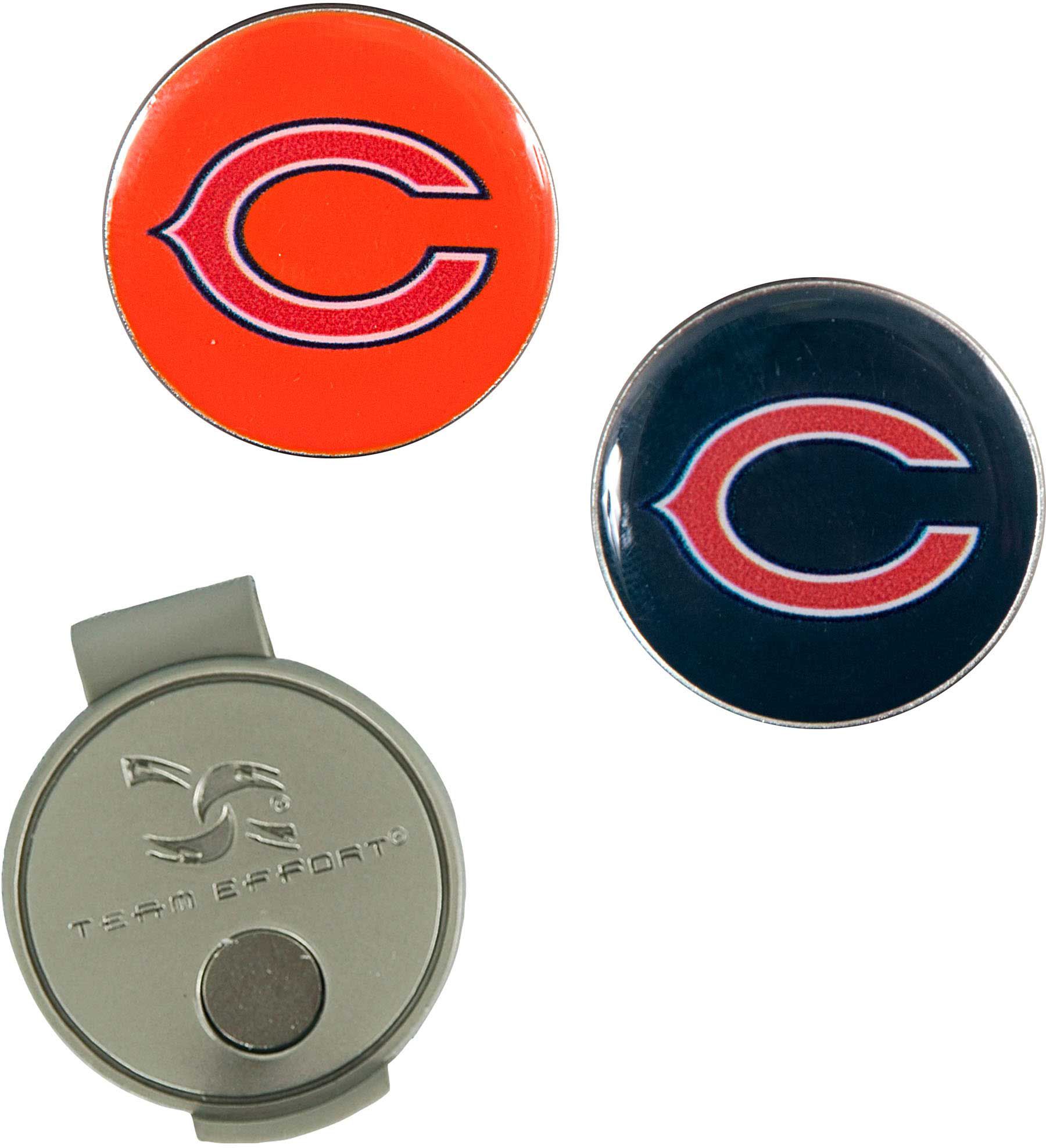 Show Bears loyalty during your pre-putt routine with the Team Effort Chicago Bears Hat Clip and Ball Markers Set. Designed to securely fix to the brim of most caps and visors, the cap clip features a nickel finish for long-lasting durability. Two interchangeable, iron-stamped ball markers feature full-color team trademarks designed to add a touch of Bears flair to your look. After your putt, the magnetic markers easily attach to the cap clip for hassle-free use.