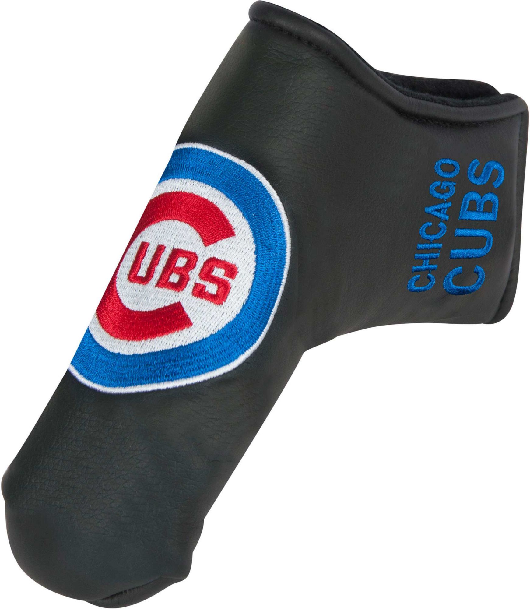 Incorporate Cubs spirit into your pre-putt routine with the Team Effort Chicago Cubs Blade Putter Headcover. Specifically tailored to fit most blade-style putter models, this premium headcover is constructed of soft-touch, water-resistant exterior material and soft fleece lining to enable complete protection during your round. A hook-and-loop closure system secures the headcover to your putter while allowing for easy on/off. Multiple team trademark embroideries create a style that brings pride to every Cubs fan.