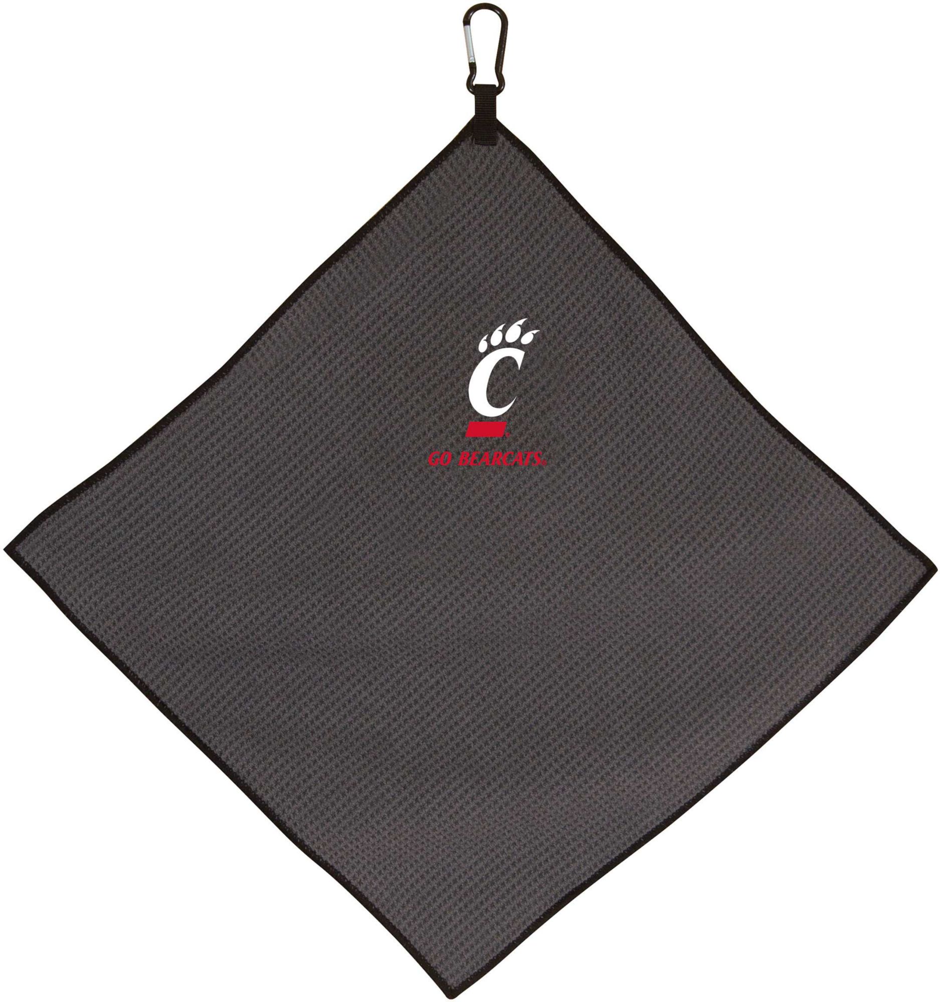 Add a flash of team sprit to your golf accessories with the Cincinnati Bearcats Microfiber Golf Towel. Constructed of soft material, this towel features a waffle weave design to ensure efficient debris removal without damage to the club finish. A durable carabiner clip securely attaches to your golf bag to keep your towel accessible and pride visible. An embroidered, full-color school logo completes the Team Effort Microfiber Golf Towel.