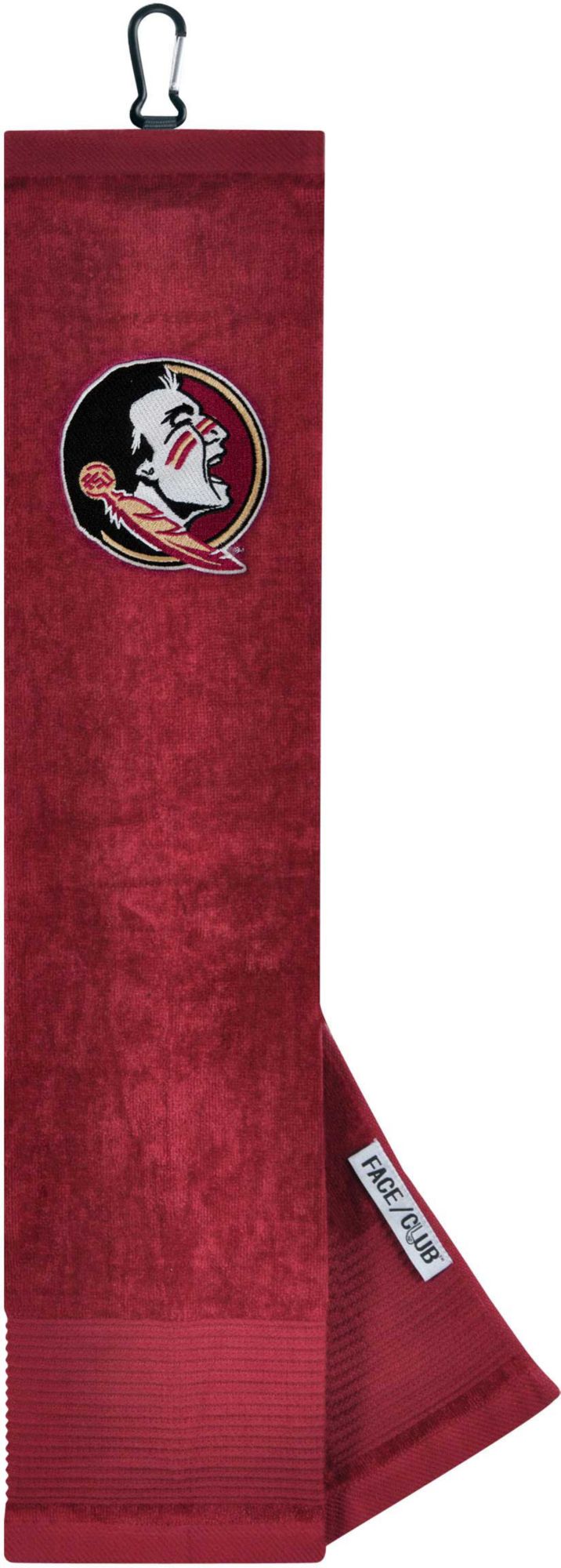 Ingenuity meets versatility to form the Team Effort Florida State Seminoles Embroidered Face/Club Tri-Fold Towel. This dual-textured towel features woven ribs designed to remove dirt from your clubs and a highly absorbent, sheared velour panel to wick away moisture. A carabineer clip located on top secures the towel to your bag or cart for maximum convenience. A boldly embroidered, full-color team trademark shows everyone on the course your support for the Seminoles .