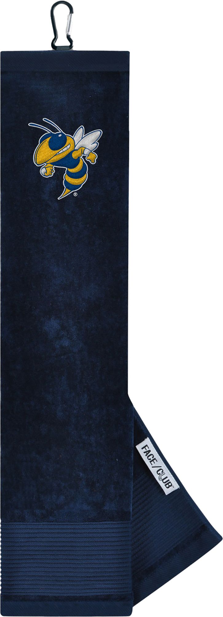Ingenuity meets versatility to form the Team Effort Embroidered Face/Club Tri-Fold Towel. This dual-textured towel features woven ribs designed to remove dirt from your clubs and a highly absorbent, sheared velour panel to wick away moisture. A carabineer clip located on top secures the towel to your bag or cart for maximum convenience. A boldly embroidered, full-color team trademark shows everyone on the course your support for your favorite team .