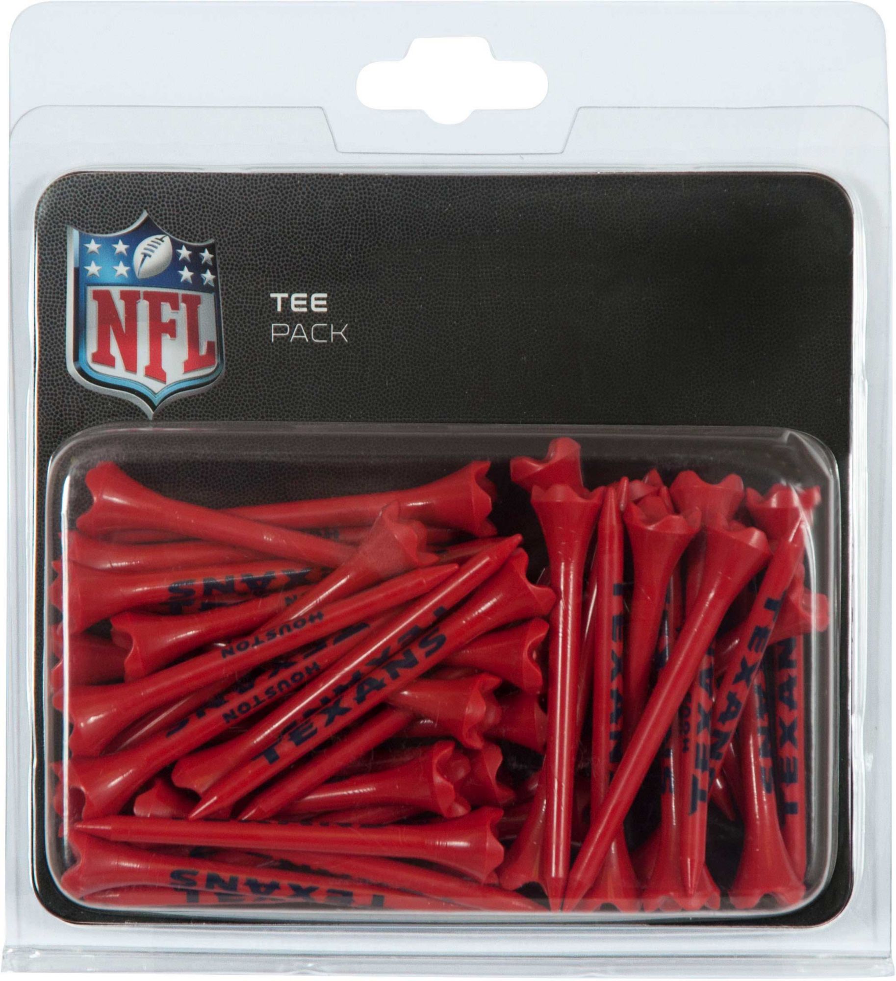 Start each hole with your Texans pride on display while using Team Effort Houston Texans Golf Tees. Suitable for use with oversized clubs, each golf tee measures 2.75” and features a durable construction to enable multiple uses. The 4-prong design minimizes club head resistance as you drive through the ball, much like the Texans drive through the competition. Eye-catching team colors and printed trademarks show unmistakable Houston Texans team spirit.
