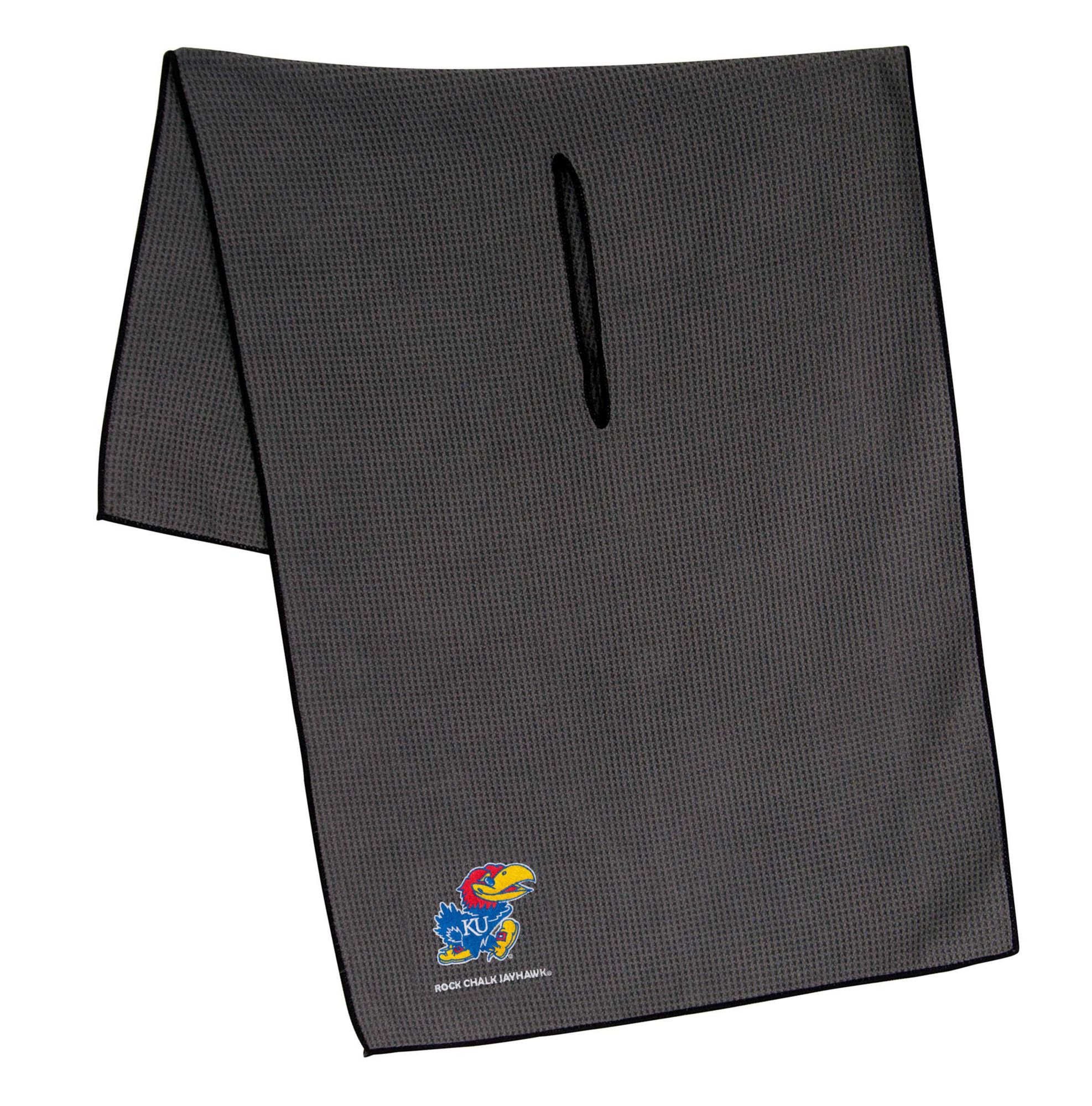 Maintain your clubs as easily as the Jayhawks maintain a lead while using the Team Effort Kansas Jayhawks Microfiber Golf Towel. The microfiber waffle-weave construction enables fast and easy club cleaning without damaging the finish. An oversized construction allows you to keep part of the towel wet and part dry for easier cleaning, while a large center slit slides over your clubs for added protection. A boldly embroidered team trademark puts your Jayhawks pride on full display.