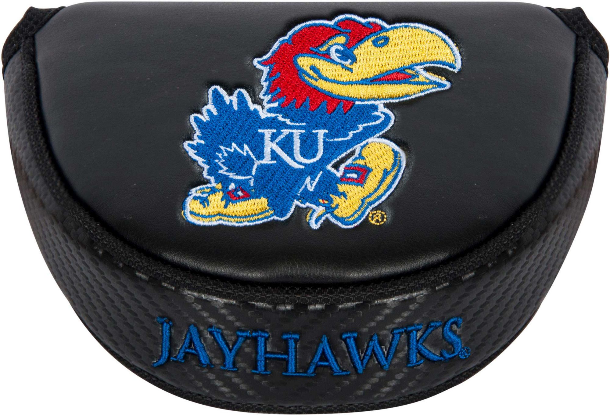 Incorporate Jayhawks spirit into your pre-putt routine with the Team Effort Kansas Jayhawks Mallet Putter Headcover. Specifically tailored to fit most mallet-style putter models, this premium headcover is constructed of soft-touch, water-resistant exterior material and soft fleece lining to enable complete protection during your round. A hook-and-loop closure system secures the headcover to your putter while allowing for easy on/off. Multiple team trademark embroideries create a style that brings pride to every Jayhawks fan.