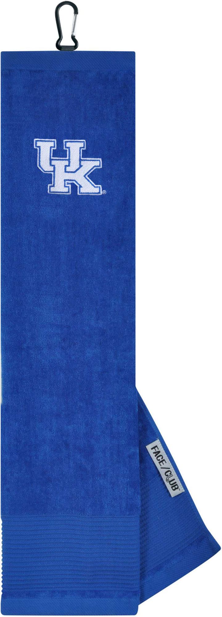 Ingenuity meets versatility to form the Team Effort Kentucky Wildcats Embroidered Face/Club Tri-Fold Towel. This dual-textured towel features woven ribs designed to remove dirt from your clubs and a highly absorbent, sheared velour panel to wick away moisture. A carabineer clip located on top secures the towel to your bag or cart for maximum convenience. A boldly embroidered, full-color team trademark shows everyone on the course your support for the Wildcats .