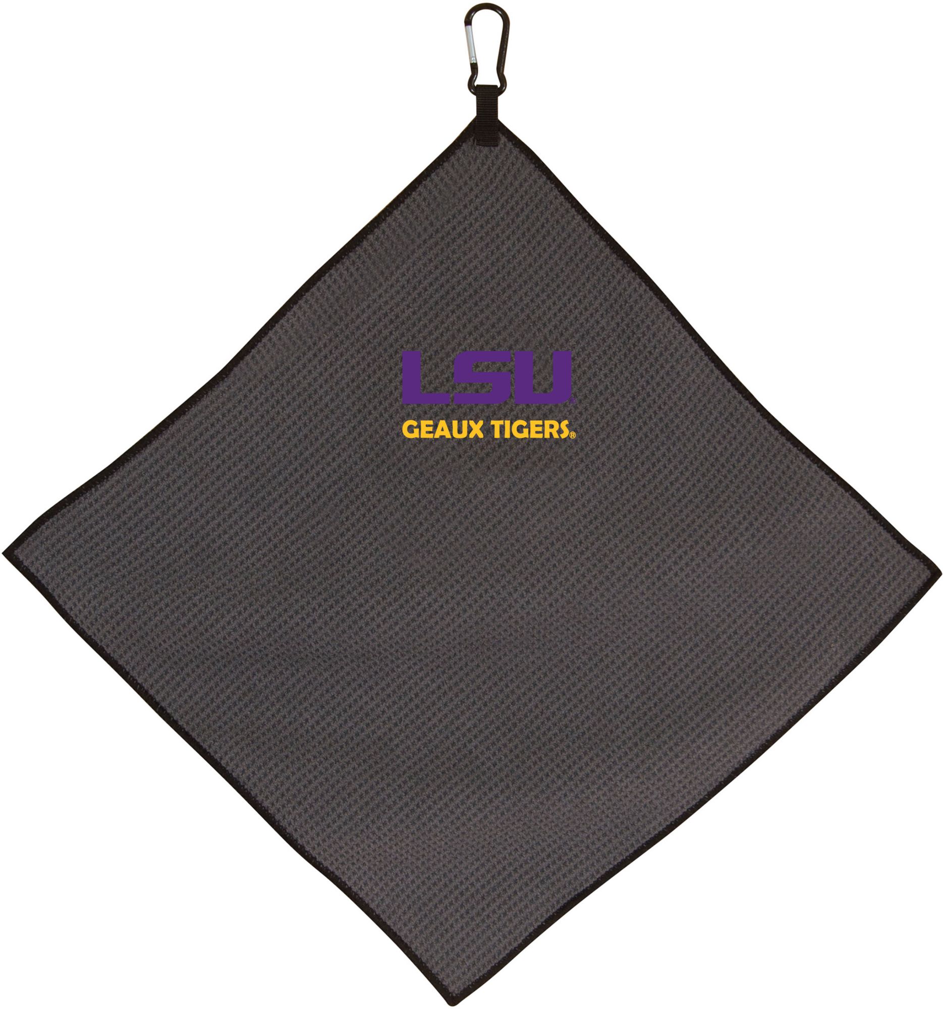 Add a flash of team sprit to your golf accessories with the LSU Tigers Microfiber Golf Towel. Constructed of soft material, this towel features a waffle weave design to ensure efficient debris removal without damage to the club finish. A durable carabiner clip securely attaches to your golf bag to keep your towel accessible and pride visible. An embroidered, full-color school logo completes the Team Effort Microfiber Golf Towel.
