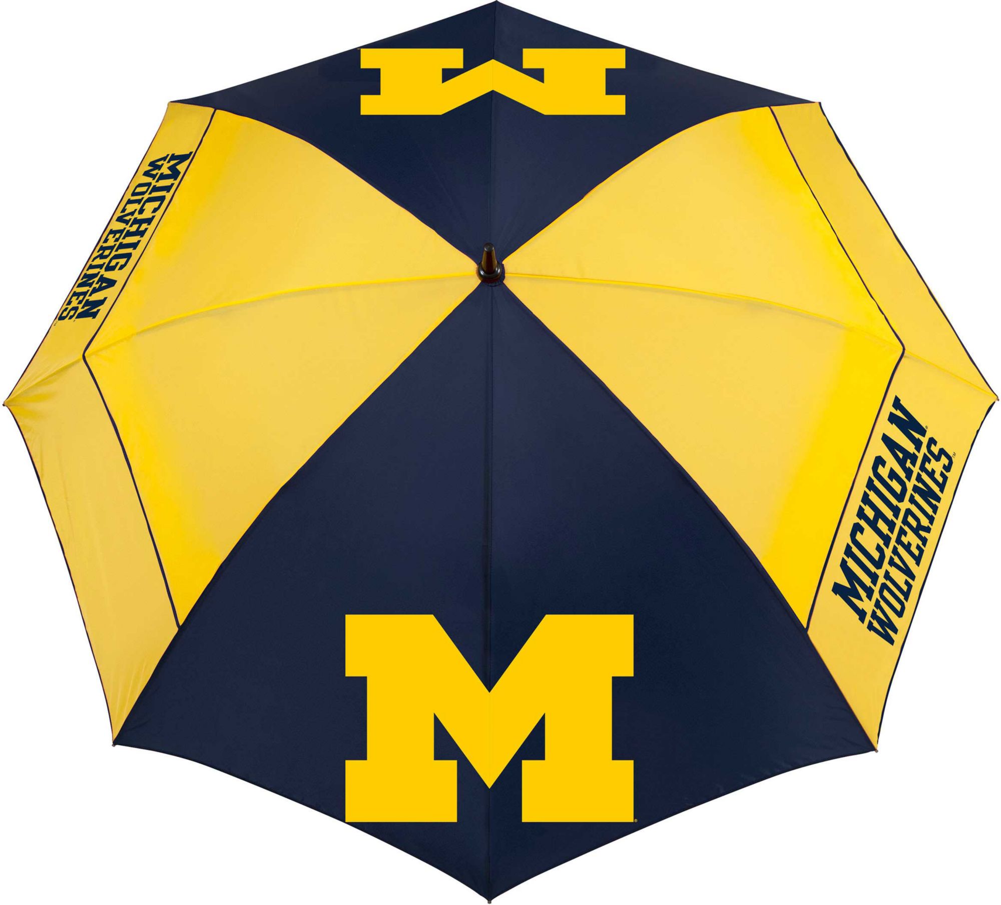 Block out the elements, much like the Wolverines block out their opponent, while using the Team Effort Michigan Wolverines Windsheer Lite Golf Umbrella. Constructed of durable 190T nylon material, the canopy features two single panels and six double panels to minimize inversion during storms and high winds. The patented Wind Release System utilizes Windlock technology to provide reliable protection. Team colors and logos deliver an unmistakable sense of Wolverines pride.