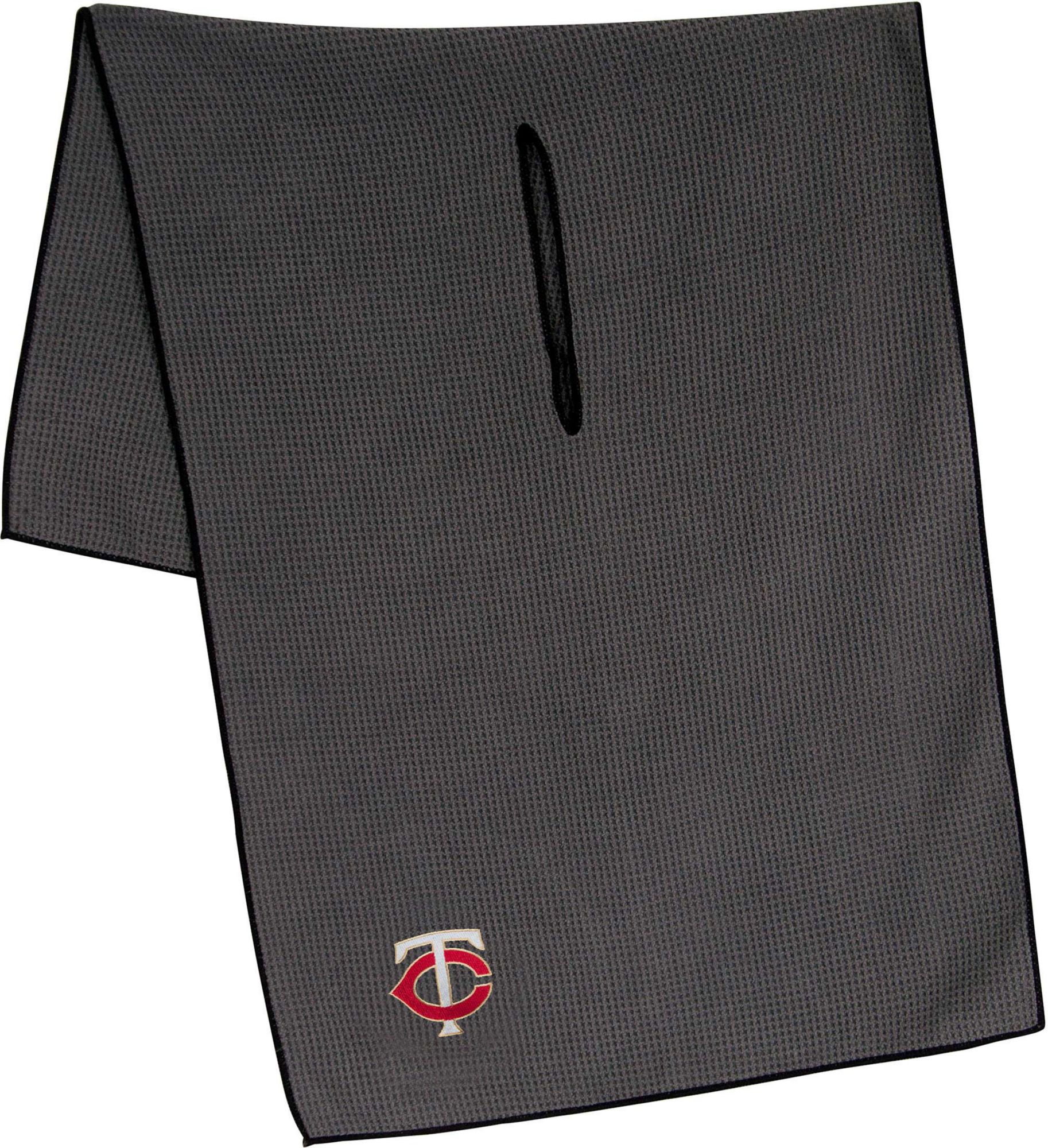 Maintain your clubs as easily as the Twins maintain a lead while using the Team Effort Minnesota Twins Microfiber Golf Towel. The microfiber waffle-weave construction enables fast and easy club cleaning without damaging the finish. An oversized construction allows you to keep part of the towel wet and part dry for easier cleaning, while a large center slit slides over your clubs for added protection. A boldly embroidered team trademark puts your Twins pride on full display.