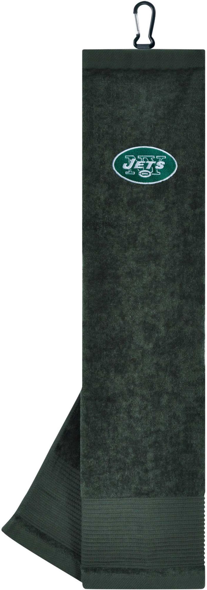 Ingenuity meets versatility to form the Team Effort New York Jets Embroidered Face/Club Tri-Fold Towel. This dual-textured towel features woven ribs designed to remove dirt from your clubs and a highly absorbent, sheared velour panel to wick away moisture. A carabineer clip located on top secures the towel to your bag or cart for maximum convenience. A boldly embroidered, full-color team trademark shows everyone on the course your support for the Jets .