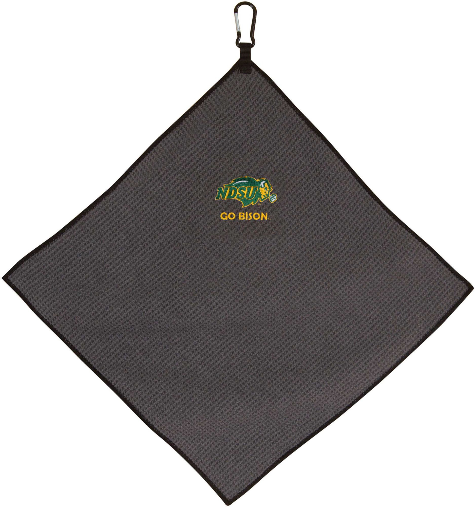 Keep your clubs in top condition while showing Bison pride with the Team Effort North Dakota State Bison Microfiber Golf Towel. The microfiber waffle-weave construction enables fast and easy club cleaning without damaging your club’s finish. A rugged carabineer clip located at the top allows you to secure the towel to your bag or cart for easy access as you prepare for your next shot. A boldly embroidered team trademark puts your Bison spirit on full display.