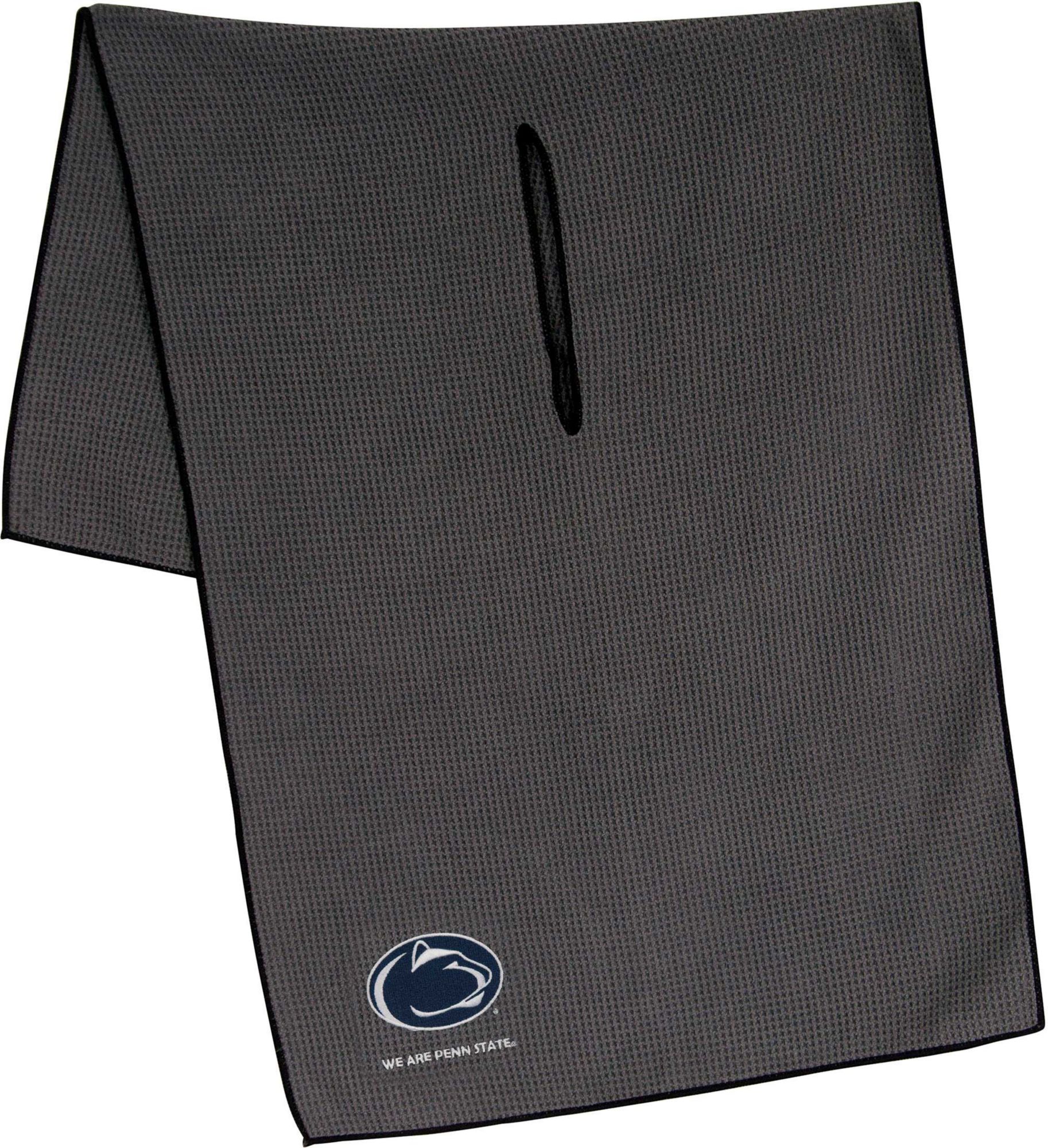 Maintain your clubs as easily as the Nittany Lions maintain a lead while using the Team Effort Penn State Nittany Lions Microfiber Golf Towel. The microfiber waffle-weave construction enables fast and easy club cleaning without damaging the finish. An oversized construction allows you to keep part of the towel wet and part dry for easier cleaning, while a large center slit slides over your clubs for added protection. A boldly embroidered team trademark puts your Nittany Lions pride on full display.