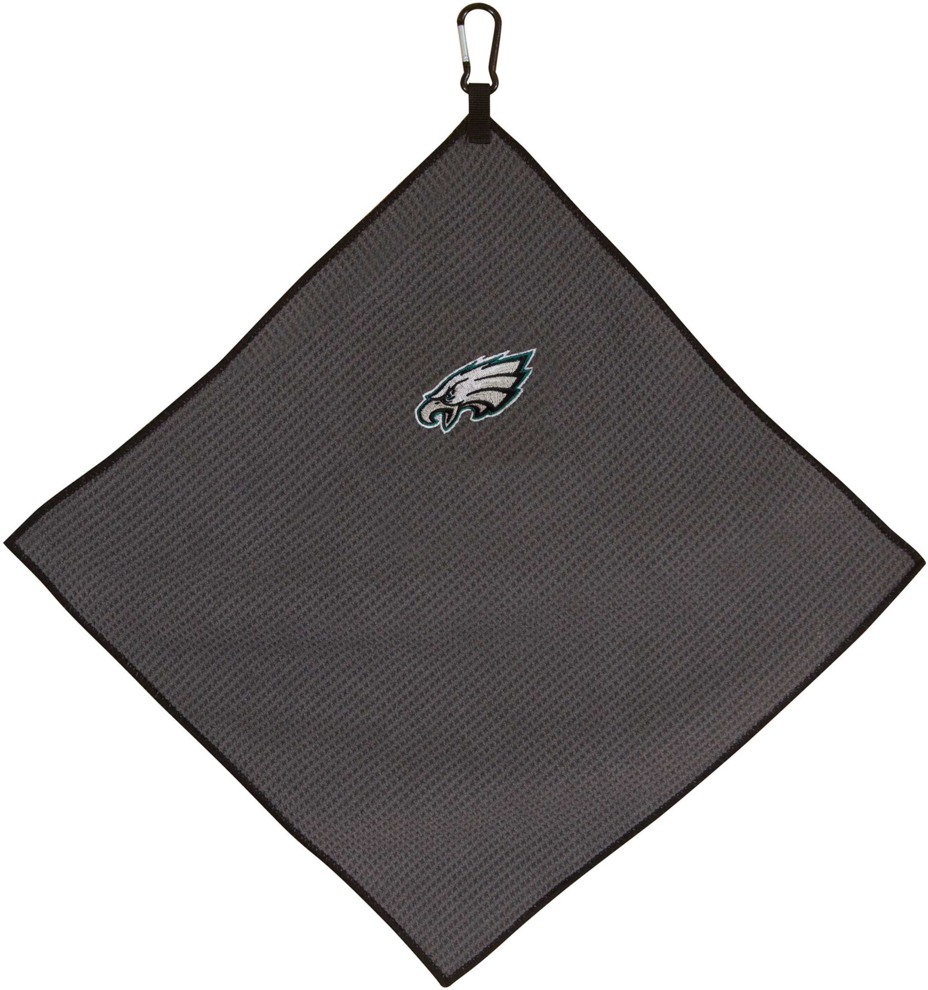 Keep your clubs in top condition while showing Eagles pride with the Team Effort Philadelphia Eagles Microfiber Golf Towel. The microfiber waffle-weave construction enables fast and easy club cleaning without damaging your club’s finish. A rugged carabineer clip located at the top allows you to secure the towel to your bag or cart for easy access as you prepare for your next shot. A boldly embroidered team trademark puts your Eagles spirit on full display.