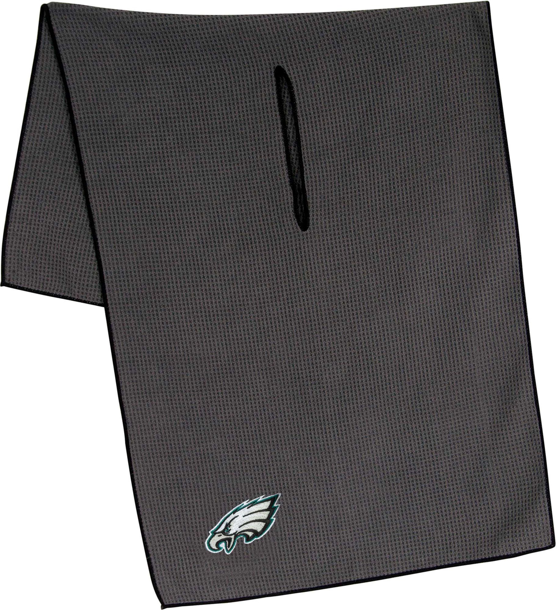 Maintain your clubs as easily as the Eagles maintain a lead while using the Team Effort Philadelphia Eagles Microfiber Golf Towel. The microfiber waffle-weave construction enables fast and easy club cleaning without damaging the finish. An oversized construction allows you to keep part of the towel wet and part dry for easier cleaning, while a large center slit slides over your clubs for added protection. A boldly embroidered team trademark puts your Eagles pride on full display.