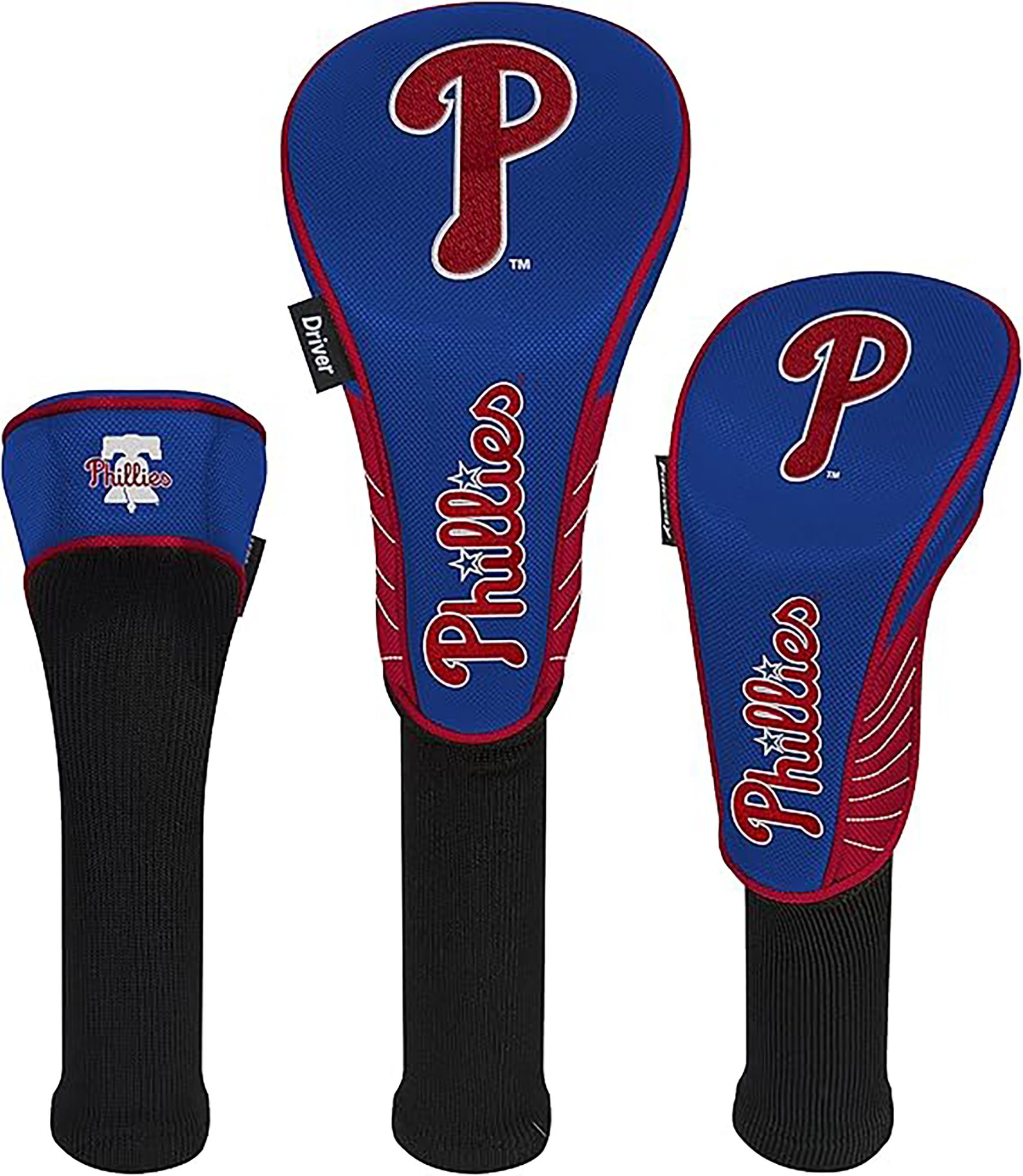 Boldly display your support for the Phillies by protecting your metalwoods with Team Effort Philadelphia Phillies Headcovers. Specifically designed to fit most driver, fairway wood and hybrid models, each premium headcover is constructed of rugged 420D nylon material and features a long neck design to deliver maximum club protection. Vibrant, contrasting team color elements combine with multiple team trademark embroideries to show your course mates who back on game day.
