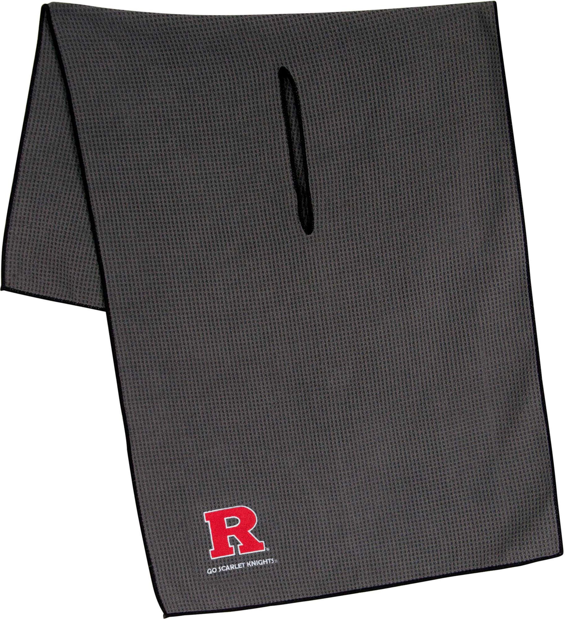 Maintain your clubs as easily as the Scarlet Knights maintain a lead while using the Team Effort Rutgers Scarlet Knights Microfiber Golf Towel. The microfiber waffle-weave construction enables fast and easy club cleaning without damaging the finish. An oversized construction allows you to keep part of the towel wet and part dry for easier cleaning, while a large center slit slides over your clubs for added protection. A boldly embroidered team trademark puts your Scarlet Knights pride on full display.