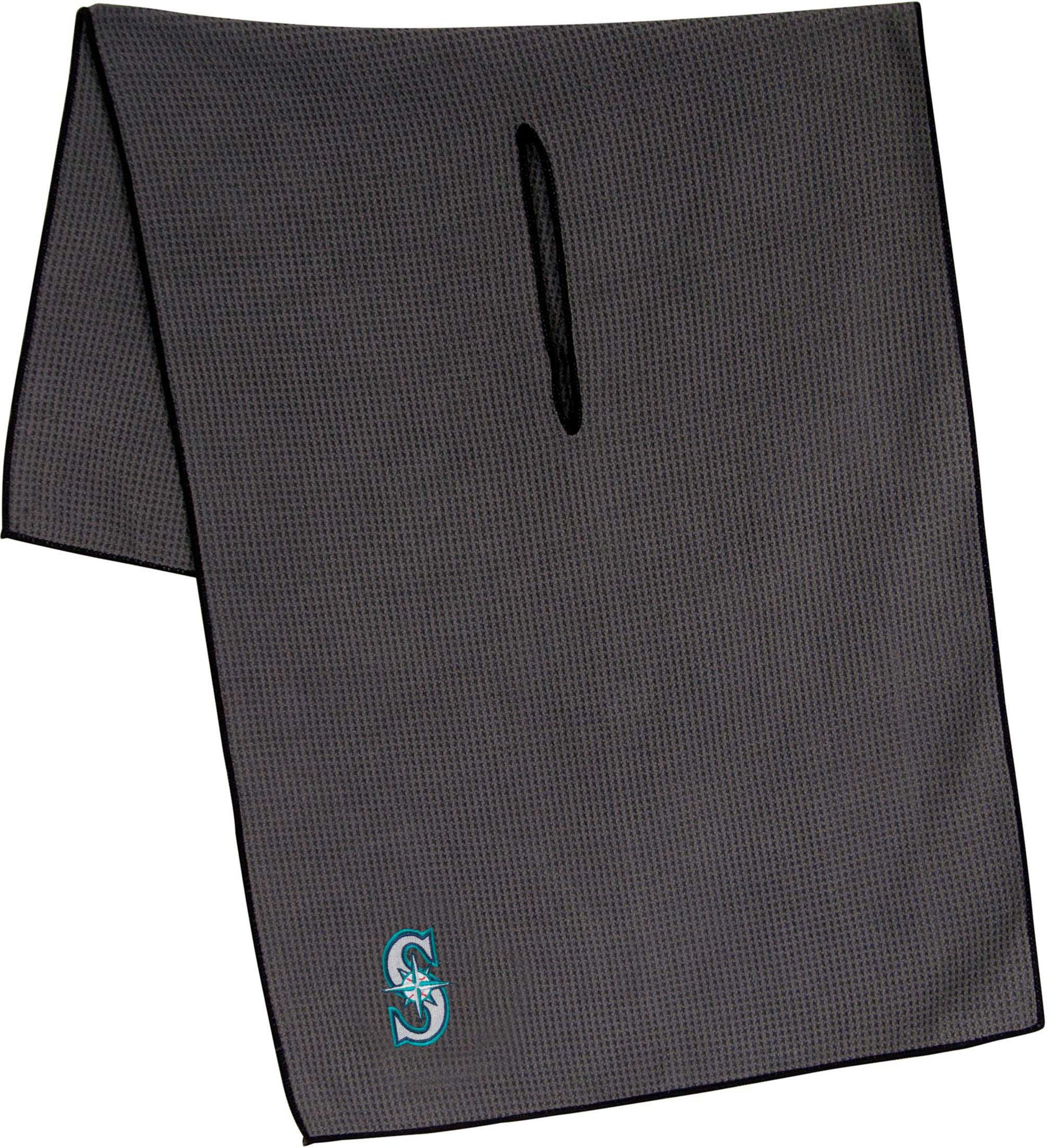 Maintain your clubs as easily as the Mariners maintain a lead while using the Team Effort Seattle Mariners Microfiber Golf Towel. The microfiber waffle-weave construction enables fast and easy club cleaning without damaging the finish. An oversized construction allows you to keep part of the towel wet and part dry for easier cleaning, while a large center slit slides over your clubs for added protection. A boldly embroidered team trademark puts your Mariners pride on full display.