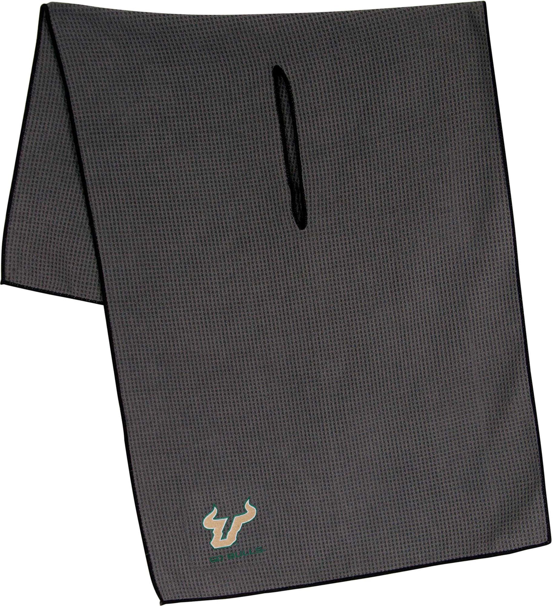 Maintain your clubs as easily as the Bulls maintain a lead while using the Team Effort South Florida Bulls Microfiber Golf Towel. The microfiber waffle-weave construction enables fast and easy club cleaning without damaging the finish. An oversized construction allows you to keep part of the towel wet and part dry for easier cleaning, while a large center slit slides over your clubs for added protection. A boldly embroidered team trademark puts your Bulls pride on full display.