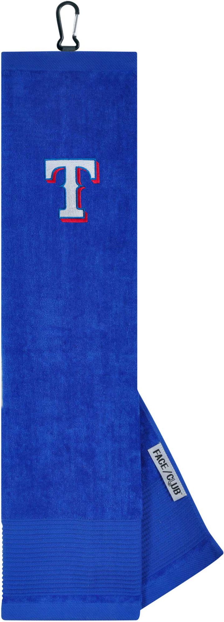 Ingenuity meets versatility to form the Team Effort Texas Rangers Embroidered Face/Club Tri-Fold Towel. This dual-textured towel features woven ribs designed to remove dirt from your clubs and a highly absorbent, sheared velour panel to wick away moisture. A carabineer clip located on top secures the towel to your bag or cart for maximum convenience. A boldly embroidered, full-color team trademark shows everyone on the course your support for the Rangers .