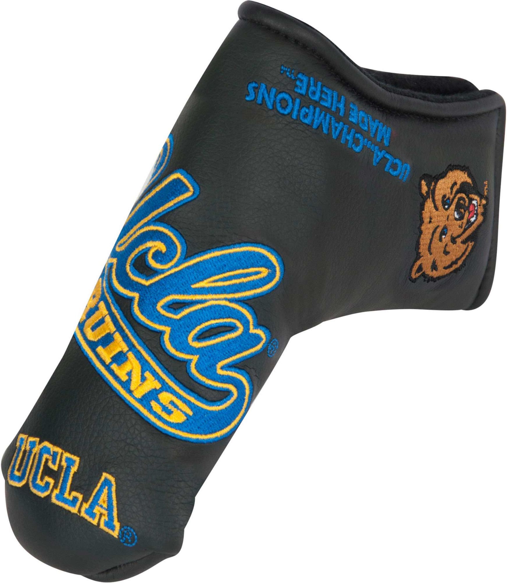 Incorporate Bruins spirit into your pre-putt routine with the Team Effort UCLA Bruins Blade Putter Headcover. Specifically tailored to fit most blade-style putter models, this premium headcover is constructed of soft-touch, water-resistant exterior material and soft fleece lining to enable complete protection during your round. A hook-and-loop closure system secures the headcover to your putter while allowing for easy on/off. Multiple team trademark embroideries create a style that brings pride to every Bruins fan.