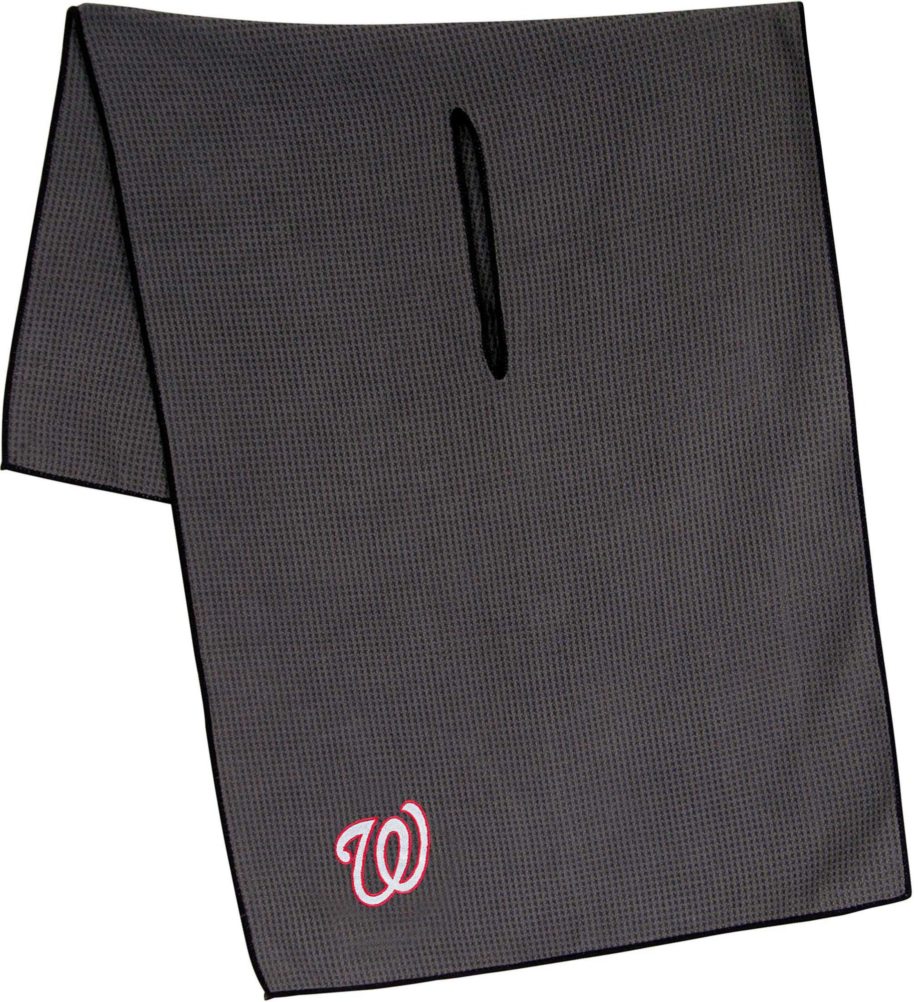 Maintain your clubs as easily as the Nationals maintain a lead while using the Team Effort Washington Nationals Microfiber Golf Towel. The microfiber waffle-weave construction enables fast and easy club cleaning without damaging the finish. An oversized construction allows you to keep part of the towel wet and part dry for easier cleaning, while a large center slit slides over your clubs for added protection. A boldly embroidered team trademark puts your Nationals pride on full display.
