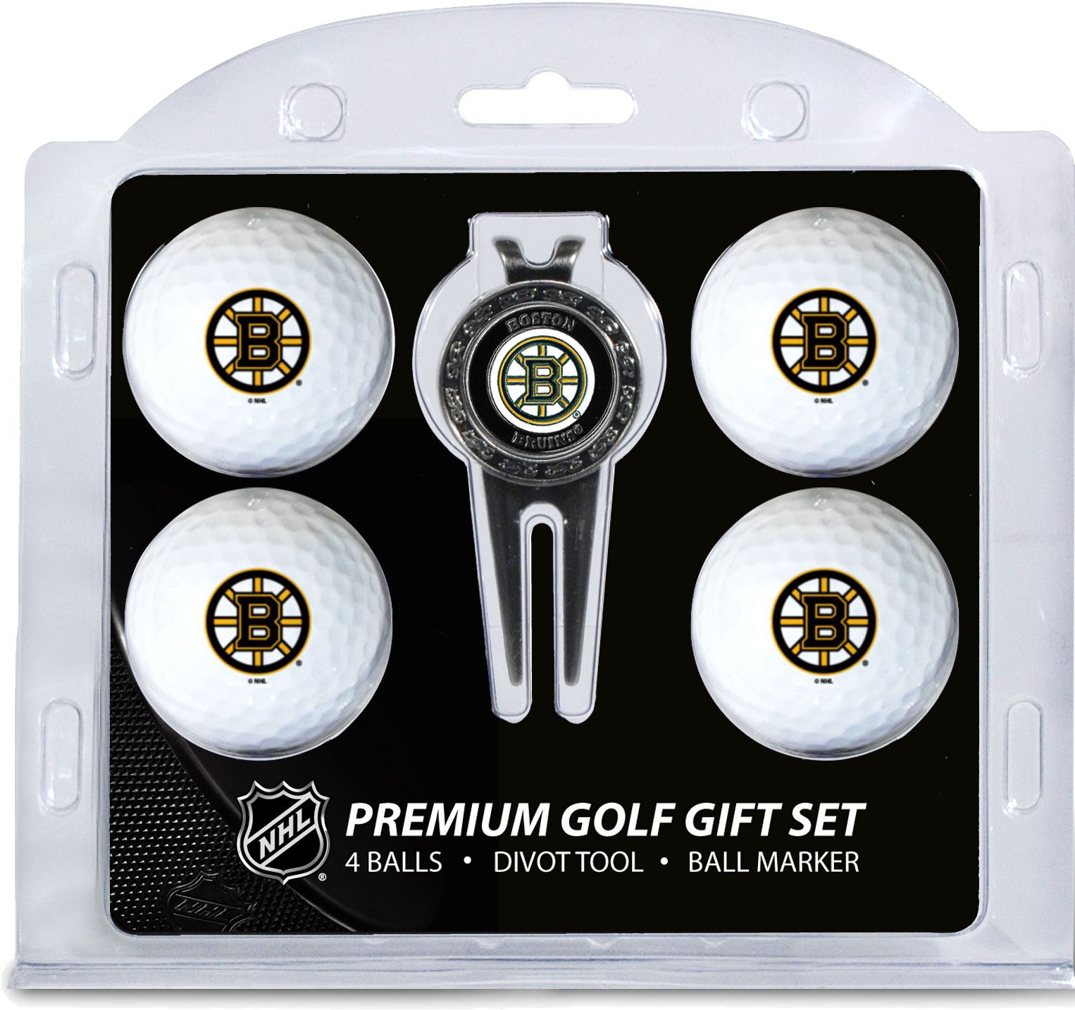 Add some hockey flair to your favorite golfer’s game with the Team Golf® Boston Bruins Premium Golf Gift Set. The set features four golf balls with the team logo, leaving no doubt who the biggest Bruins fan is. With a double-sided, magnetic ball marker and divot tool, this gift set has everything a hockey fan needs to hit the links in style. Give the perfect gift with the Team Golf® Premium Golf Gift Set.