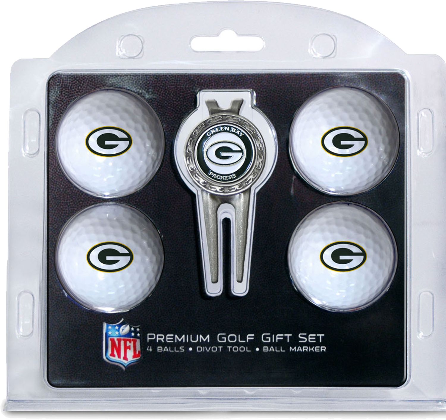 Give your favorite football fan the ultimate gift with the Team Golf® Premium Set. This set includes four regulation golf balls, each with a durable imprint of your team’s official NFL® logo. You’ll also get a divot tool with a belt clip and removable, double-sided magnetic marker. An extra small marker is included on the back. Surprise the golfer in your life with the Team Golf® Premium Gift Set.