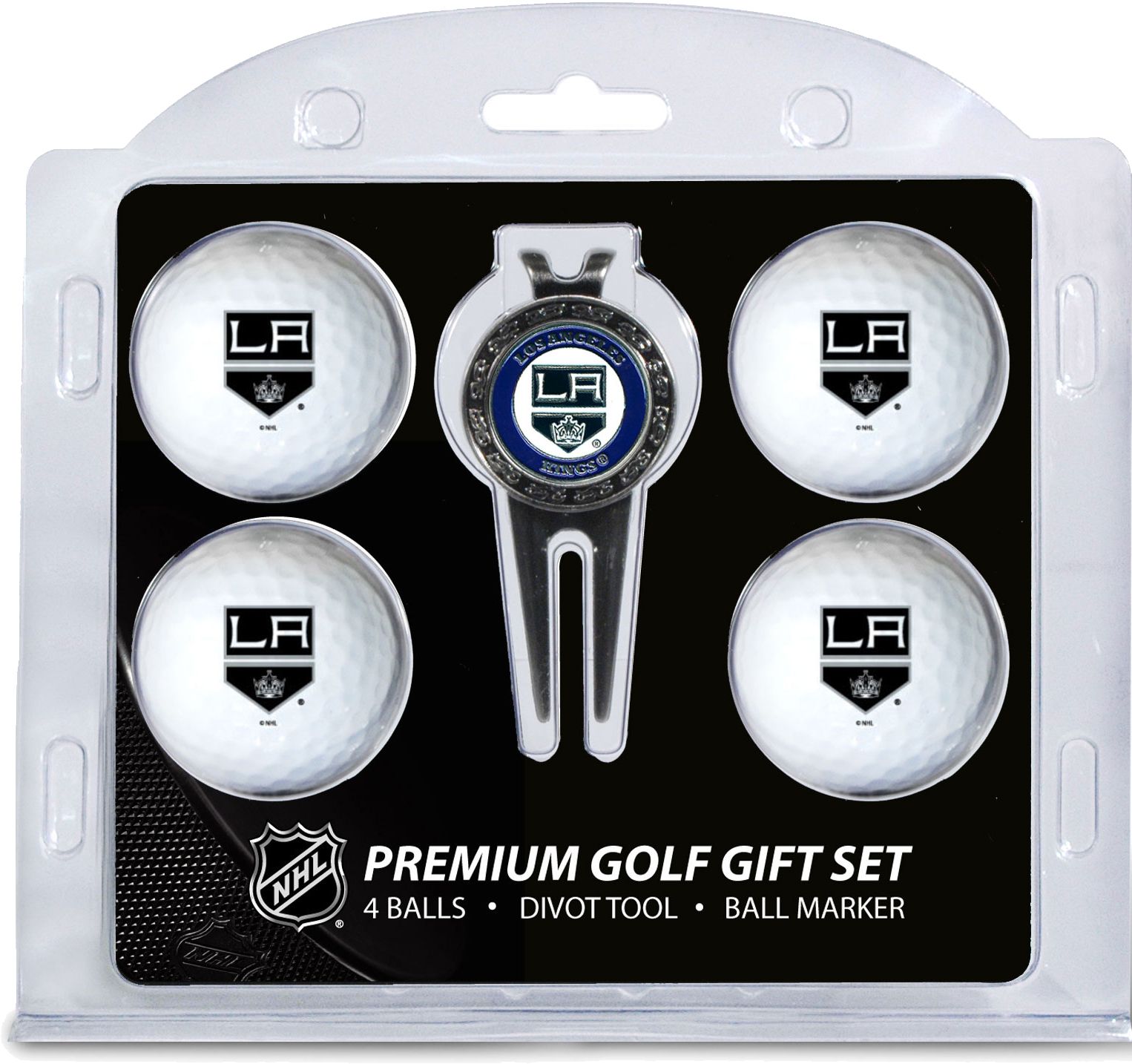 Add some hockey flair to your favorite golfer’s game with the Team Golf® Los Angeles Kings Premium Golf Gift Set. The set features four golf balls with the team logo, leaving no doubt who the biggest Kings fan is. With a double-sided, magnetic ball marker and divot tool, this gift set has everything a hockey fan needs to hit the links in style. Give the perfect gift with the Team Golf® Premium Golf Gift Set.