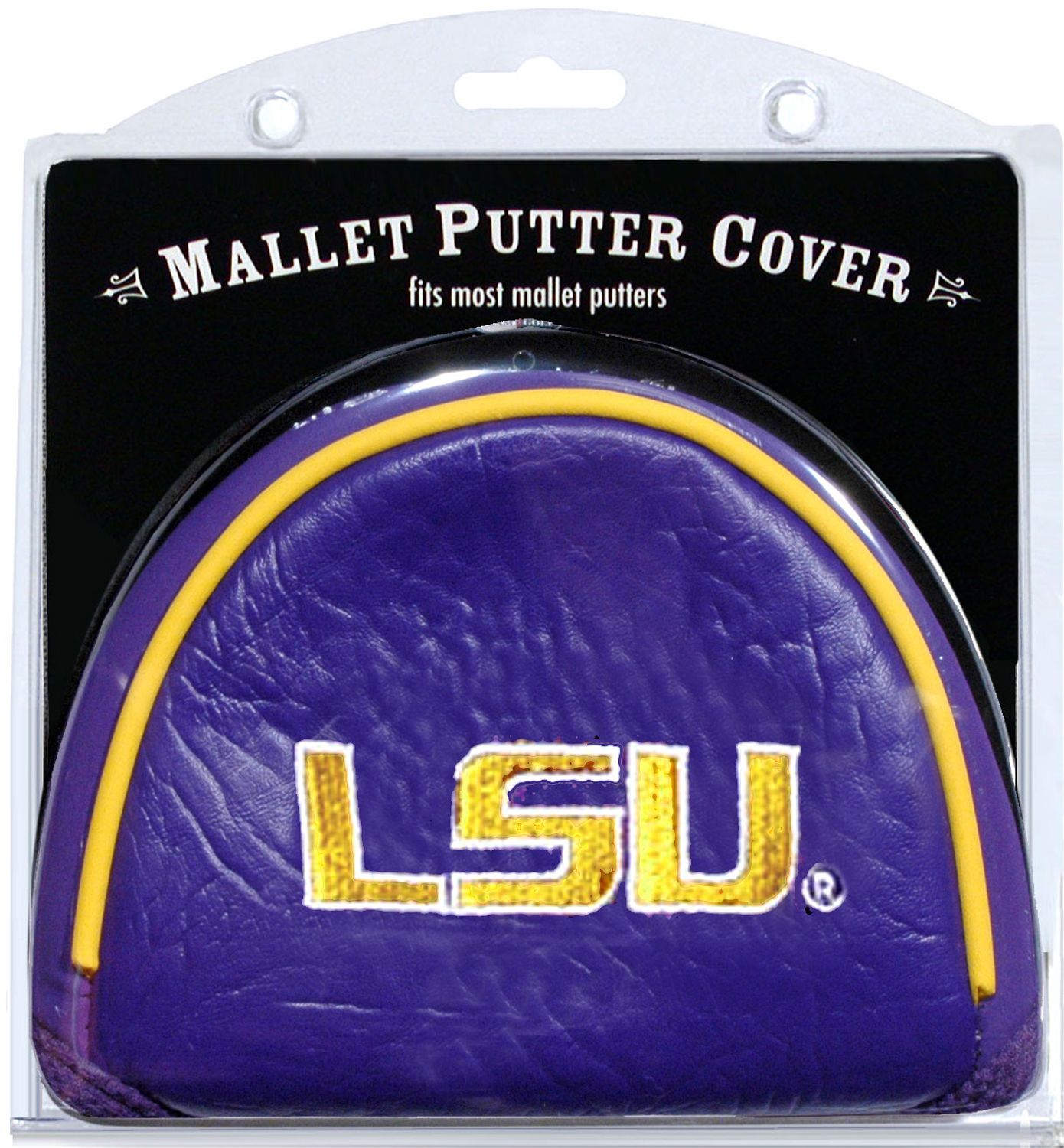 Incorporate some team spirit into the protection of your club with the Team Golf® LSU Tigers Mallet Putter Cover. Featuring an embroidered official team logo and a school wordmark, this mallet putter cover will ensure that your fandom is clearly displayed when you’re not on the green. Your club will stay clean and protected when you get the fleece-lined Team Golf® Mallet Putter Cover.